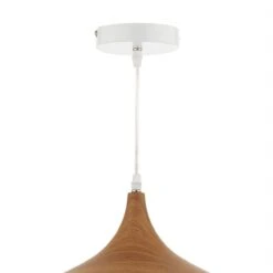 The GAUCHO 1lt Large Pendant features a white high-gloss ceiling plate and matching metal shade with feature wood effect cap detail.