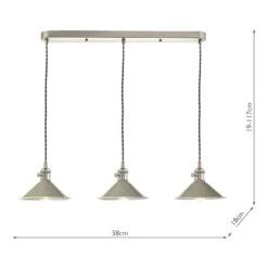 A trio of 3 single pendants suspended with grey twisted braided suspension cable. Each pendant can be individually adjusted during fitting so it hangs at the perfect height for you.