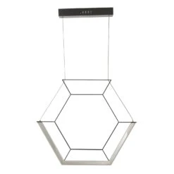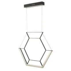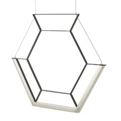 The HEXAGON pendant brings a dramatic geometry to interior spaces; featuring a hexagonal design with a satin black inner frame. Complete with a polished chrome base frame and LED that provides a 2800K warm white light that’s ideal for living and dining rooms.
