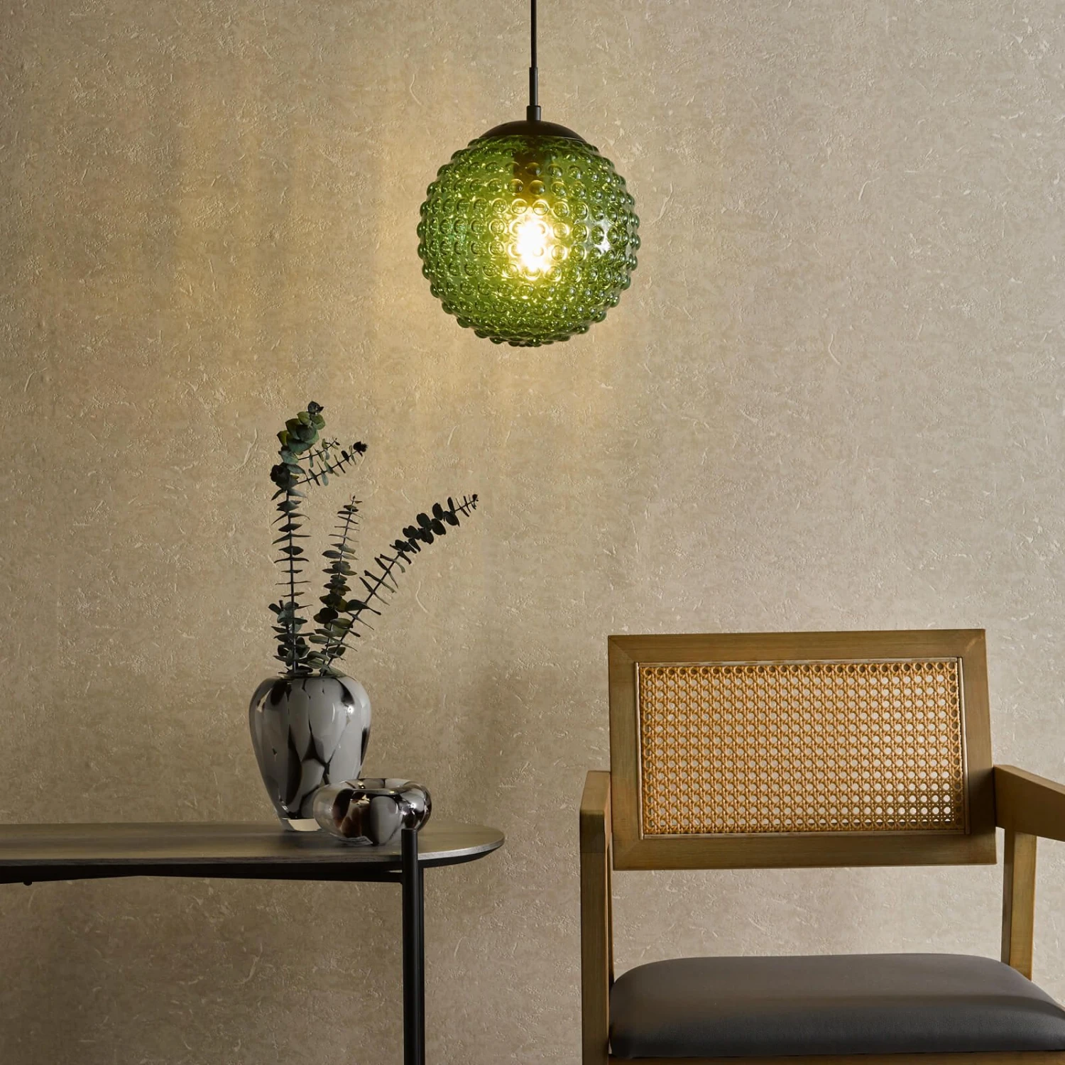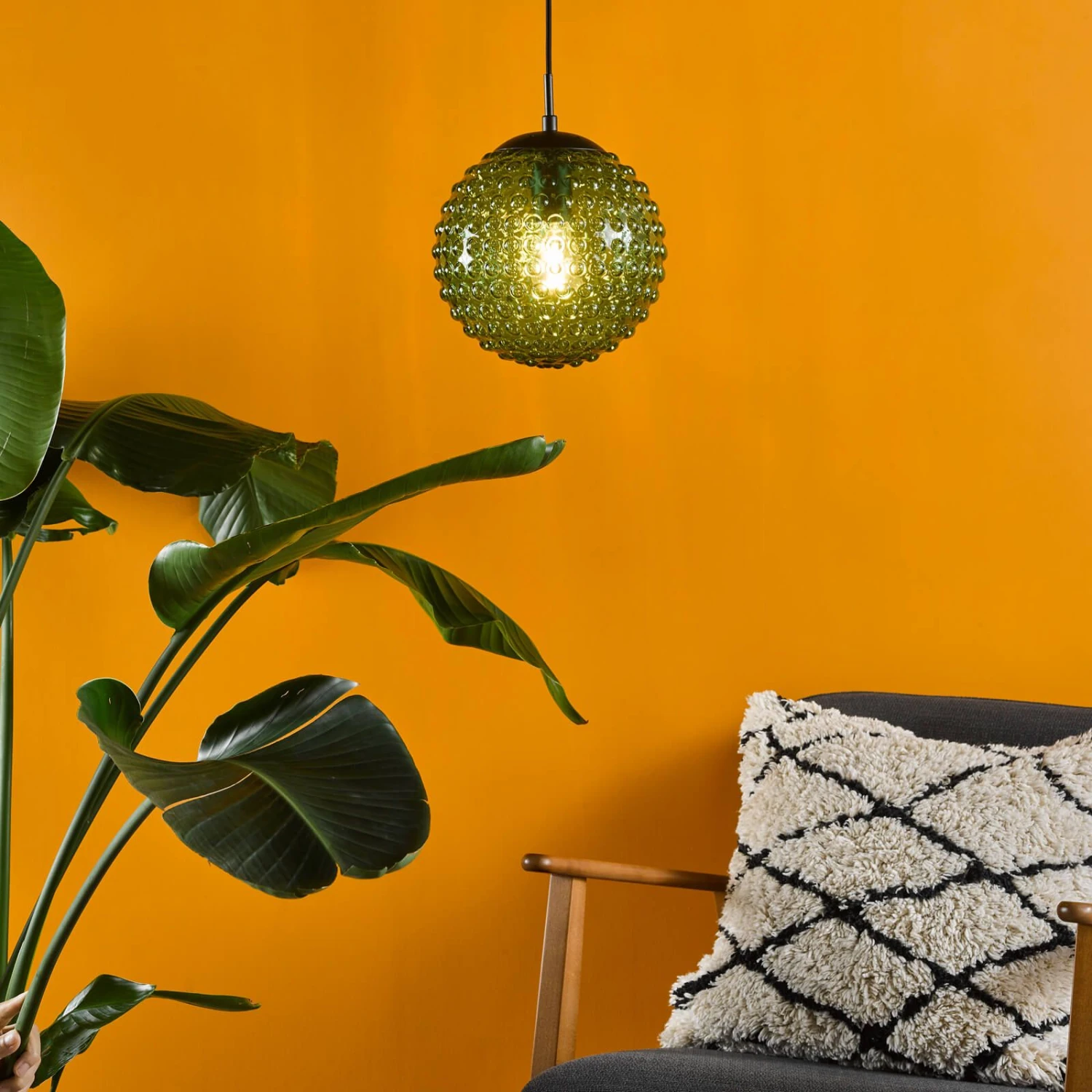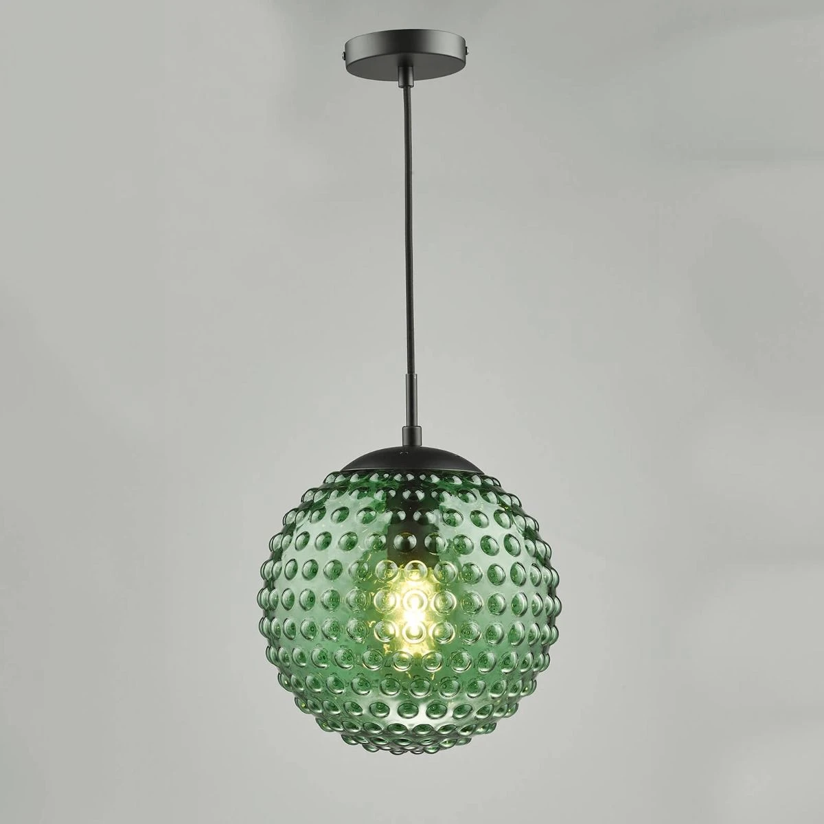The Hobnail Pendant Matt Black & Green Glass is a beautiful yet understated piece of our trendy Hobnail glass. The simple black metal frame allows the glass to really shine, while the height adjustable cable allows you to set the perfect height. Whether you want to add some style to a living room or bedroom or want to create an entryway statement piece, the Hobnail Pendant is sure to impress.