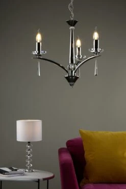 The Hyperion 3lt pendant is the perfect choice for modern interiors. With faceted crystal glass detailing to the central column, sconces, pointed finial and decorative, tapered baguette droppers make the fitting ultra-stylish .