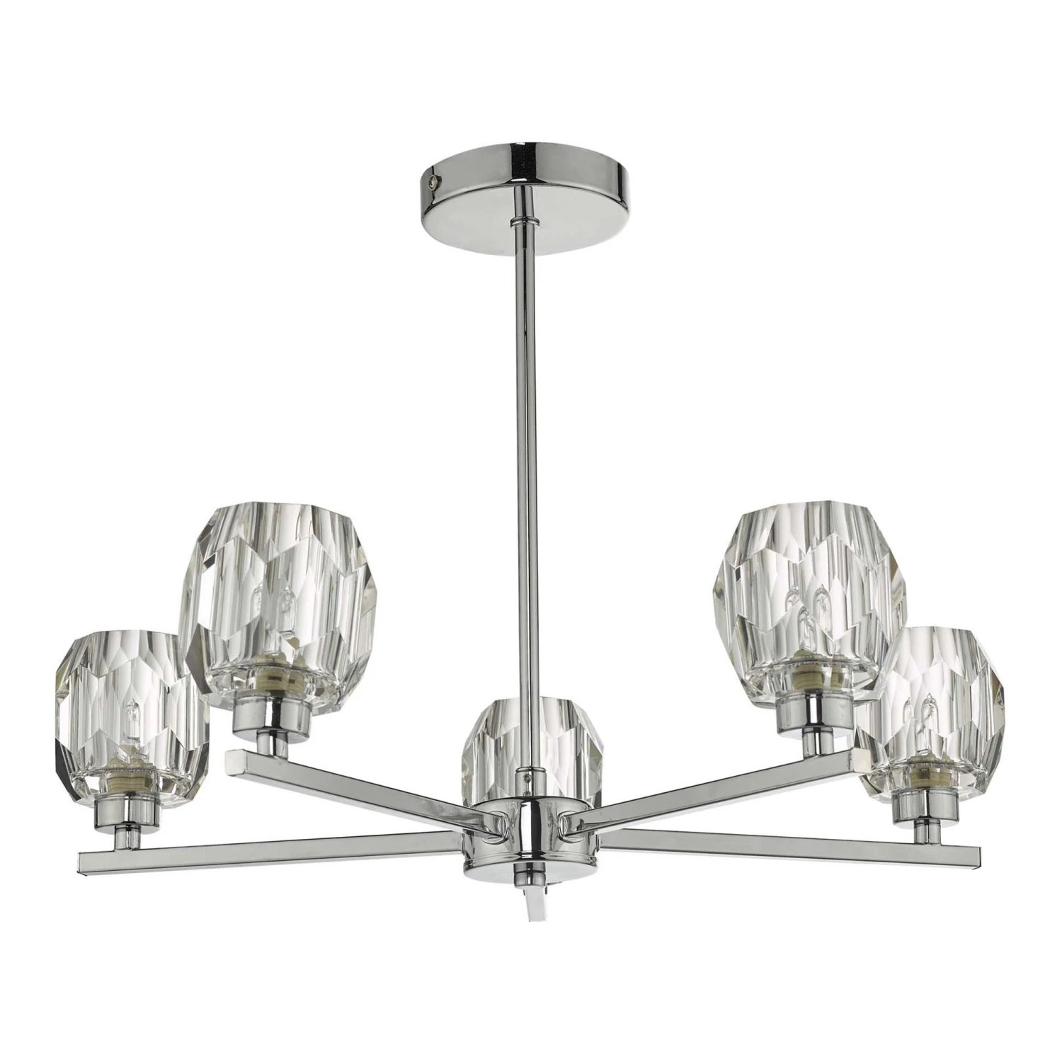 The Idina 3 light Pendant IDI5450 features beautiful faceted glass shades resting on slender square polished chrome finish arms. Part of the Idina range which also features a smaller similarly styled 3 light semi flush IDI5350