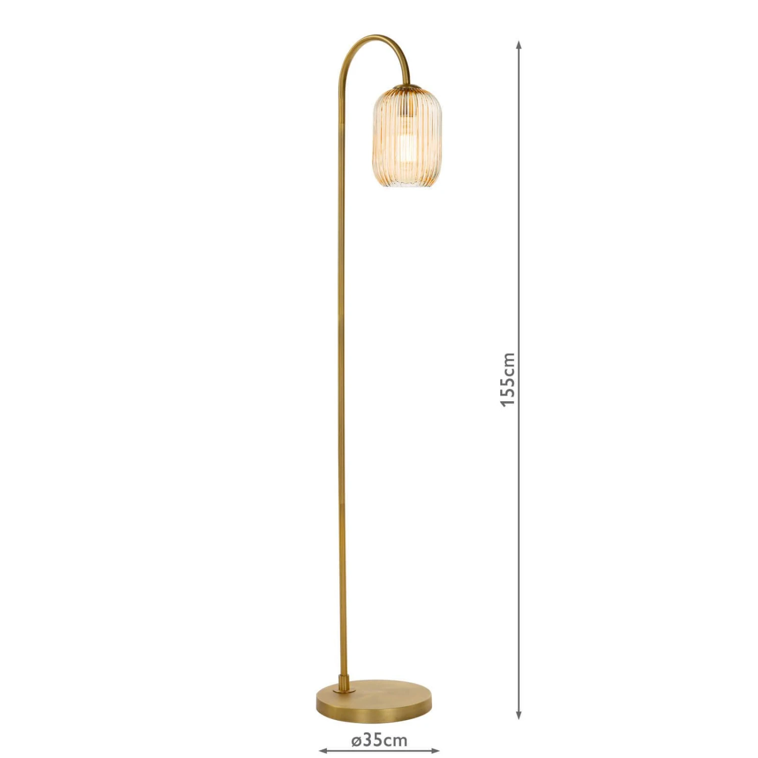 The Idra Floor Lamp casts an elegant glow in any space with its oversized j-arm and champagne ribbed glass shade. Aged bronze accents and a black braided cable add a touch of rustic refinement. Whether illuminating a reading nook or accenting a dining room or bedroom, the Idra floor lamp blends seamlessly into any setting with its understated yet striking design.