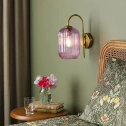 The Idra Wall Light Aged Bronze and Pink Ribbed Glass is an oversize wall light with an oversized J-arm to illuminate your room with a warm glow. The simple yet stylish wall light features a aged bronze finish with a pink ribbed glass shade. The pull cord switch is located on the base for easy access. Whether you want to add some ambient light to your kitchen or dining room or want to add a striking wall light to your hallway or bedroom, the Idra wall light is sure to impress.