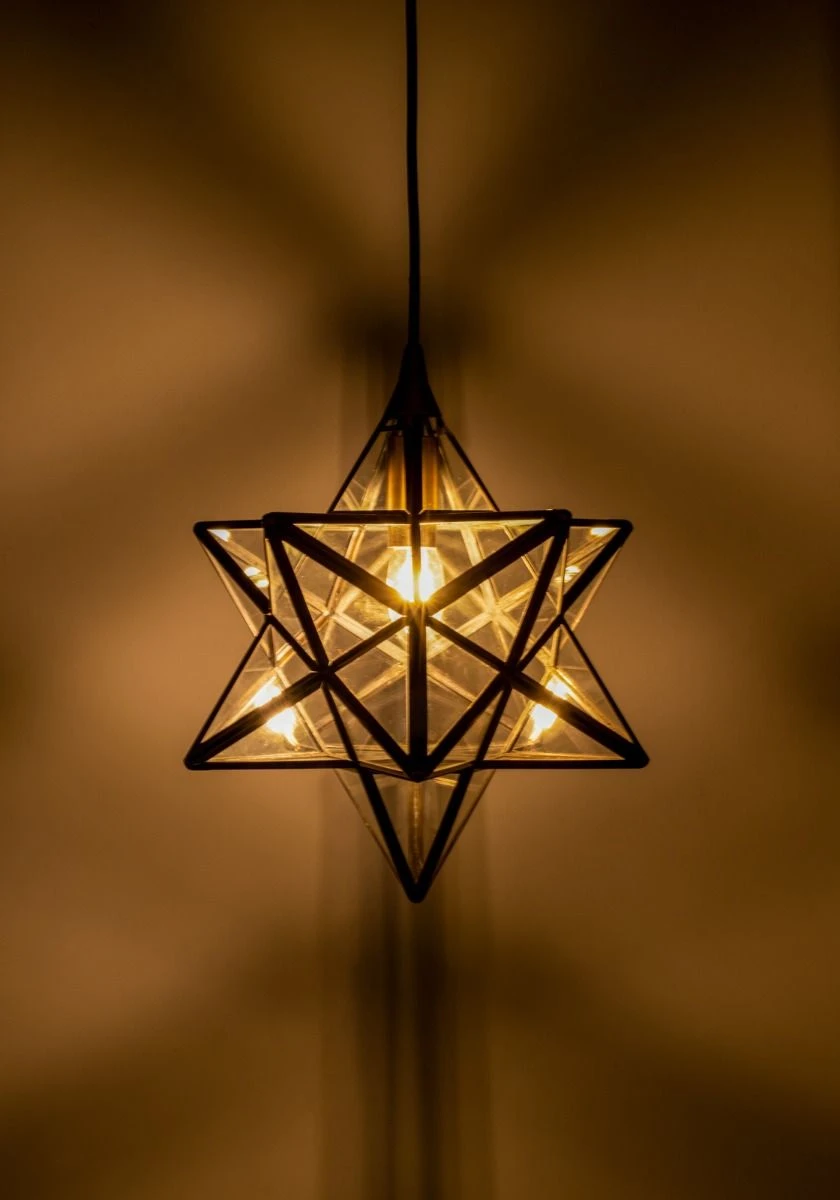The small Ilario glass panelled star pendant features an antique brass finish. This charming design is full of character and ideal for adding character to your room.