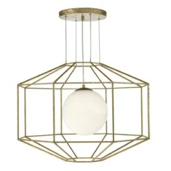 IZMIR has a sophisticated mid centuary feel with an elegant old gold frame and matching ceiling plate encasing a soft white opal globe. supplied with a meter of wire and 1 x E27 lamp holder suitable for LED lamps. This fitting looks equally graceful close to the ceiling or on a longer suspension.