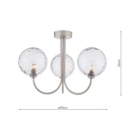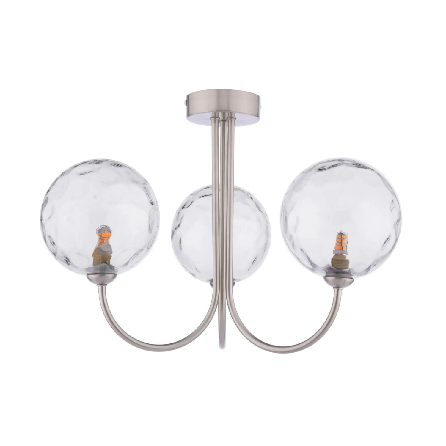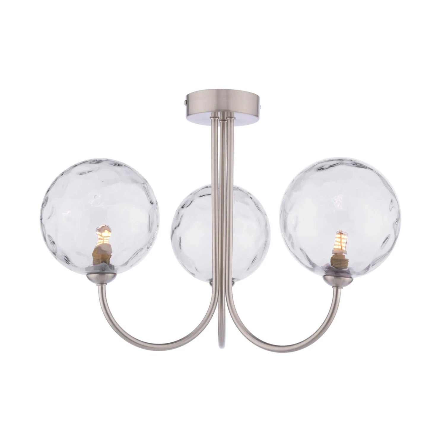 The Jared 3 Light Semi-Flush Satin Nickel & Dimpled Clear Glass is a beautiful semi-flush fitting with an attractive satin nickel finish and lovely clear dimpled glass shades. The Jared semi-flush is suitable for an entryway, dining room or anywhere a little style is needed.