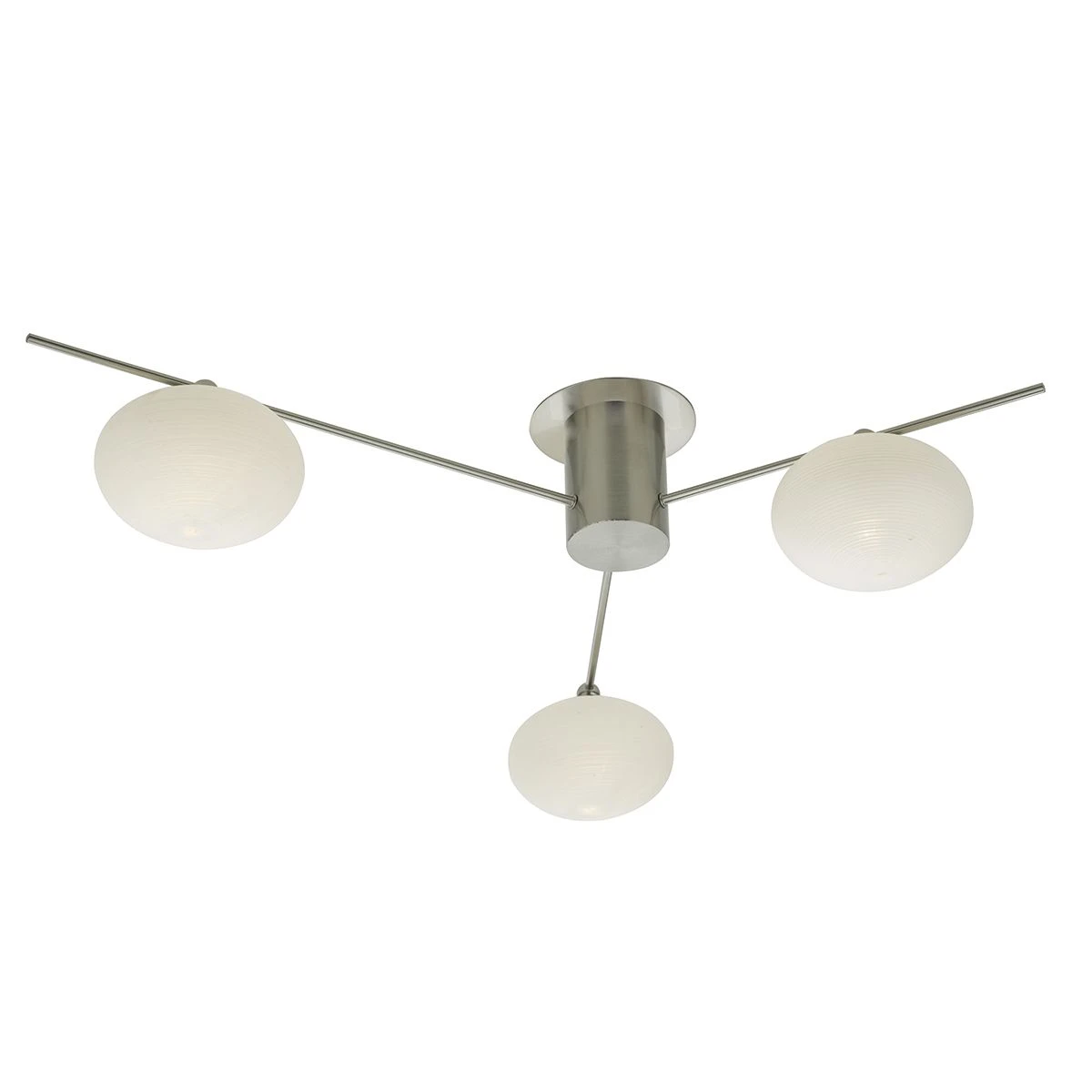 JASPER – an exercise in minimalism. Subtle spiral textured opal glass rest on fine satin nickel arms mounted to a narrow centre body. This semi-flush fitting is perfect for low ceilings and is supplied with an optional 10cm back plate to aid installation. Takes G9 lamps we recommend BUL/G9/LED/3.