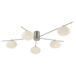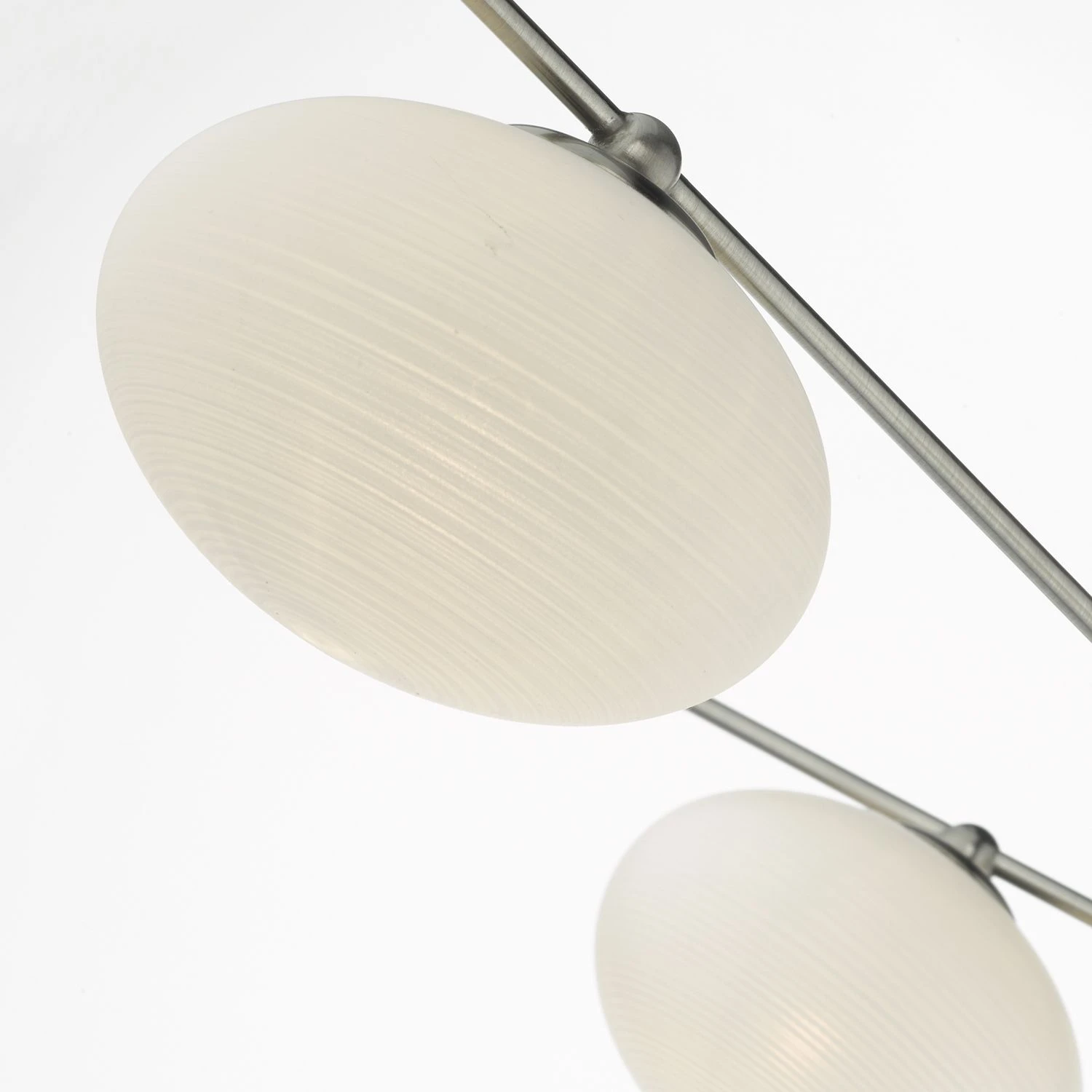JASPER – an exercise in minimalism. Subtle spiral textured opal glass rest on fine satin nickel arms mounted to a narrow centre body. This semi-flush fitting is perfect for low ceilings and is supplied with an optional 10cm back plate to aid installation.
