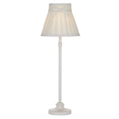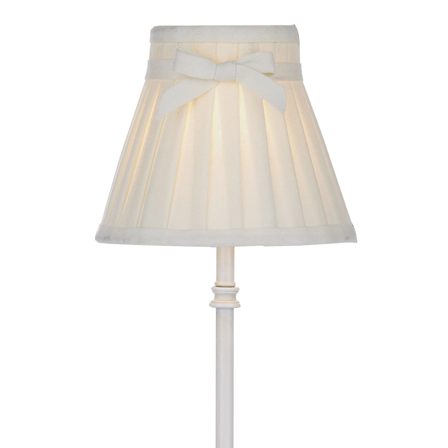 The JUDY Table Lamp features a hand cast resin base in a soft cream finish and has a cream linen pleated shade with bow trim detail and self coloured trim to edges.