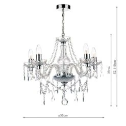 Enhanced by pear-shaped crystal droppers and festooned with crystal beads, with a large cut ball for a finial, the glamorous Katie chandelier will look sensational in practically any room of your home. It features acrylic barley twist arms, acrylic crystals and decorative cut-glass sconces, so is far lighter than an all-glass version would be.