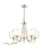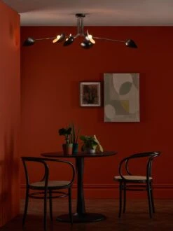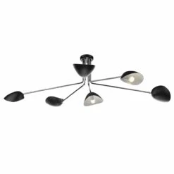 KRUG is a giant six-light pendant with fully adjustable shell-like heads in polished chrome and contrasting matte black. A striking piece inspired by a 50s modernist design, this versatile pendant can add a touch of modernism to a Victorian interior or sit perfectly in a mid-century apartment. Each head can rotate independently to face the ceiling and provide a soft light or face towards objects for a more interesting highlight effect. The fixed height of 38cm is suitable for most homes. A matching wall lamp is also available.
