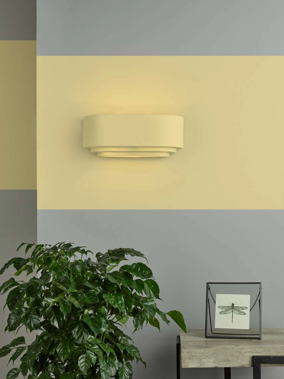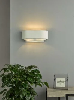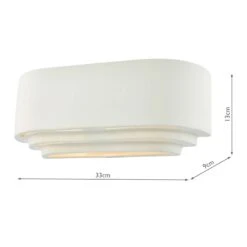 The Lando ceramic wall washer is hand cast with an art deco inspired stepped shape, the openings top and bottom and between the steps allow for light to be cast up and down. It’s unglazed finish means that it can be painted to compliment the surrounding décor.