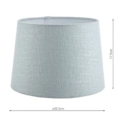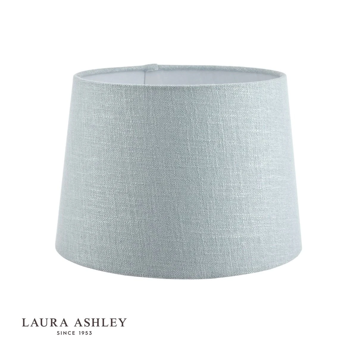 The Laura Ashley Bacall lightshade has a classic, slightly angled, Empire form. The diameter of this size is 25cm. Here we finish it in slubbed linen in duck egg blue.