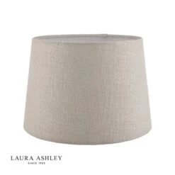 The Laura Ashley Bacall lightshade has a classic, slightly angled, Empire drum form. The diameter of this size is 35cm. Here we finish it in slubbed linen in silver.