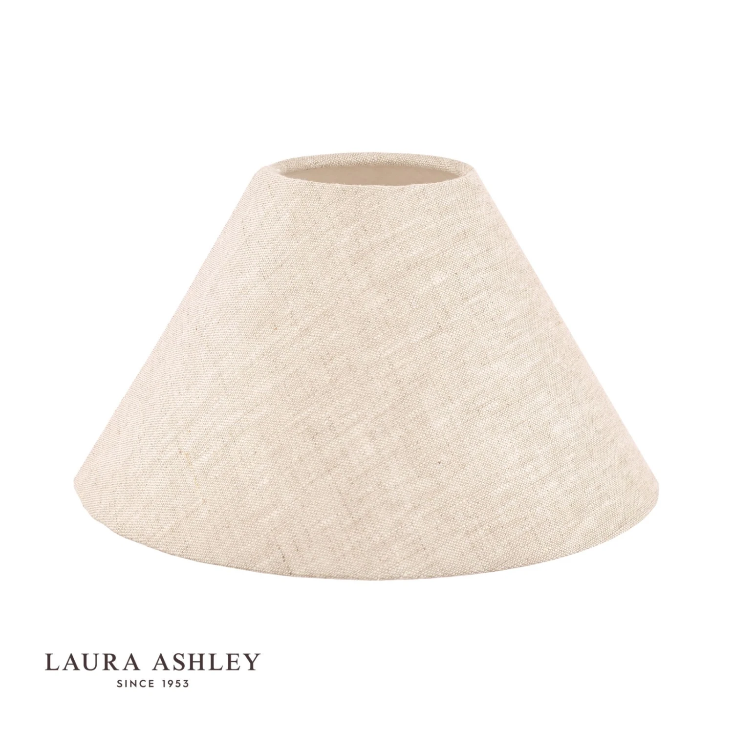 In a contemporary revival of this classic tapered shape, the Laura Ashley Bray lightshade has a drum form in a luxury, soft pure 100% linen, lined with cotton. Create a new silhouette with this more angular, slightly edgy form; also ideal in the smaller room as it is a space saving shape. This luxury shade is in a neutral colour, so will flatter any lamp base or light fitting you care to team with it. Fabric shade only; fitting not included. Suitable for E27 fittings; comes with a reducer ring to fit traditional B22 fittings and has a reversible gimble to fit ceiling light suspensions.