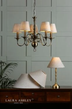 In a contemporary revival of this classic tapered shape, the Laura Ashley Bray lightshade has a drum form in a luxury, soft pure 100% linen, lined with cotton. Create a new silhouette with this more angular, slightly edgy form; also ideal in the smaller room as it is a space saving shape. This luxury shade is in a neutral colour, so will flatter any lamp base or light fitting you care to team with it. Fabric shade only; fitting not included. suitable for E27 fittings; comes with a reducer ring to fit traditional B22 fittings.