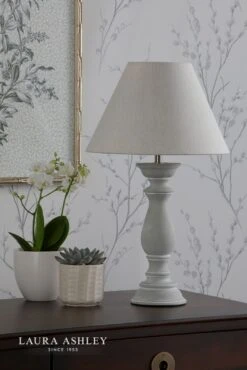 The Chedworth table lamp by Laura Ashley will make a elegant, yet stylish addition to your home. It features a concrete moulded base in a classic shape paired with a tapered Natural linen shade and a braided grey cable with an inline switch. Bulb not included; takes 1 x 40W max ES GLS.