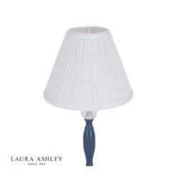 The Laura Ashley Ellis table lamp has an elegant metal spindle base incorporating a pretty faceted glass ball. With a satin-painted finish, this delightful table light comes complete with an pleated cotton shade. Fabric shade included. Bulb not included; takes 1 x 40W max SES candle. It includes a white cable with a convenient in-line rocker switch.
