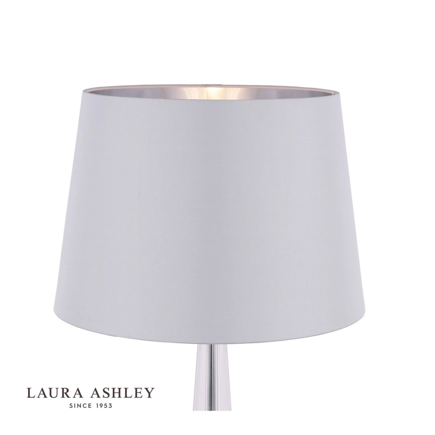 The Emyr Silk Tapered Drum Shade by Laura Ashley is handmade with 100% Luxury Silk. The Tapered Drum Lampshade in smooth silver silk and silver metallic inner, will add a touch of glamour to any room. Fabric shade only; fitting not included. 60W max. Suitable for ES fittings. Comes with a reducer ring to fit SES and B22 fittings and has a reversible gimble to fit as a ceiling shade.