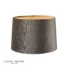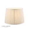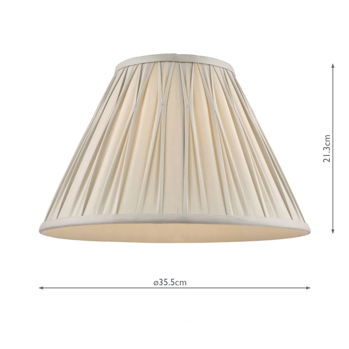 The Laura Ashley Fenn lightshade has a classic, slightly angled, Empire drum form. The diameter of this size is 35cm. Here we finish it in an elegant, pinched pleat smooth silk in silver.