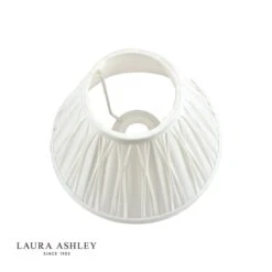 The Laura Ashley Fenn lightshade has a classic, slightly angled, Empire drum form. The diameter of this size is 20cm. Here we finish it in an elegant, pinched pleat smooth silk in white.