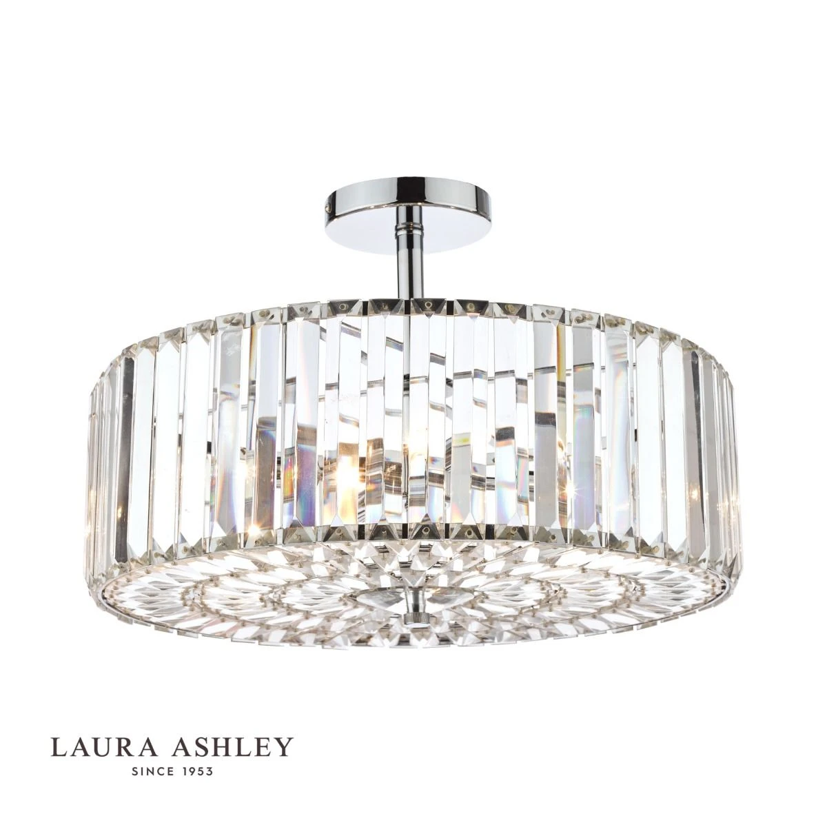 Enjoy the way light bounces off the crystal of the Fernhurst semi-flush pendant light from Laura Ashley, which simply oozes Art Deco style. Wonderfully opulent, with a circular ‘coffin’ crystal rod design (encasing 4 lights) and a bright polished chrome finish, it will introduce a polished finish to your living space.