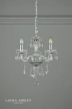 If you want to create all the glamour of a French chandelier, choose the Harriet ceiling light from Laura Ashley. Positively dripping with light-refracting faceted crystal almonds, this glass pendant light has 3 lights held on curved crystal arms. This armed ceiling fitting has polished chrome fittings, and will be right at home with both contemporary and more traditionally décor.