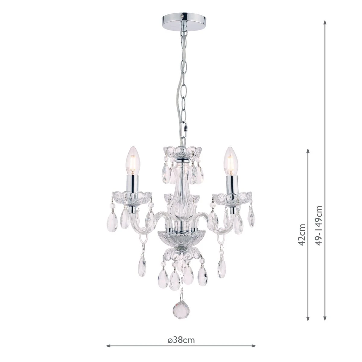 This ceiling pendant fitting has a matching finish ceiling rose and hanging chain plus a white cable. Shades not needed. Height is adjustable at the point of installation (49–149cm).