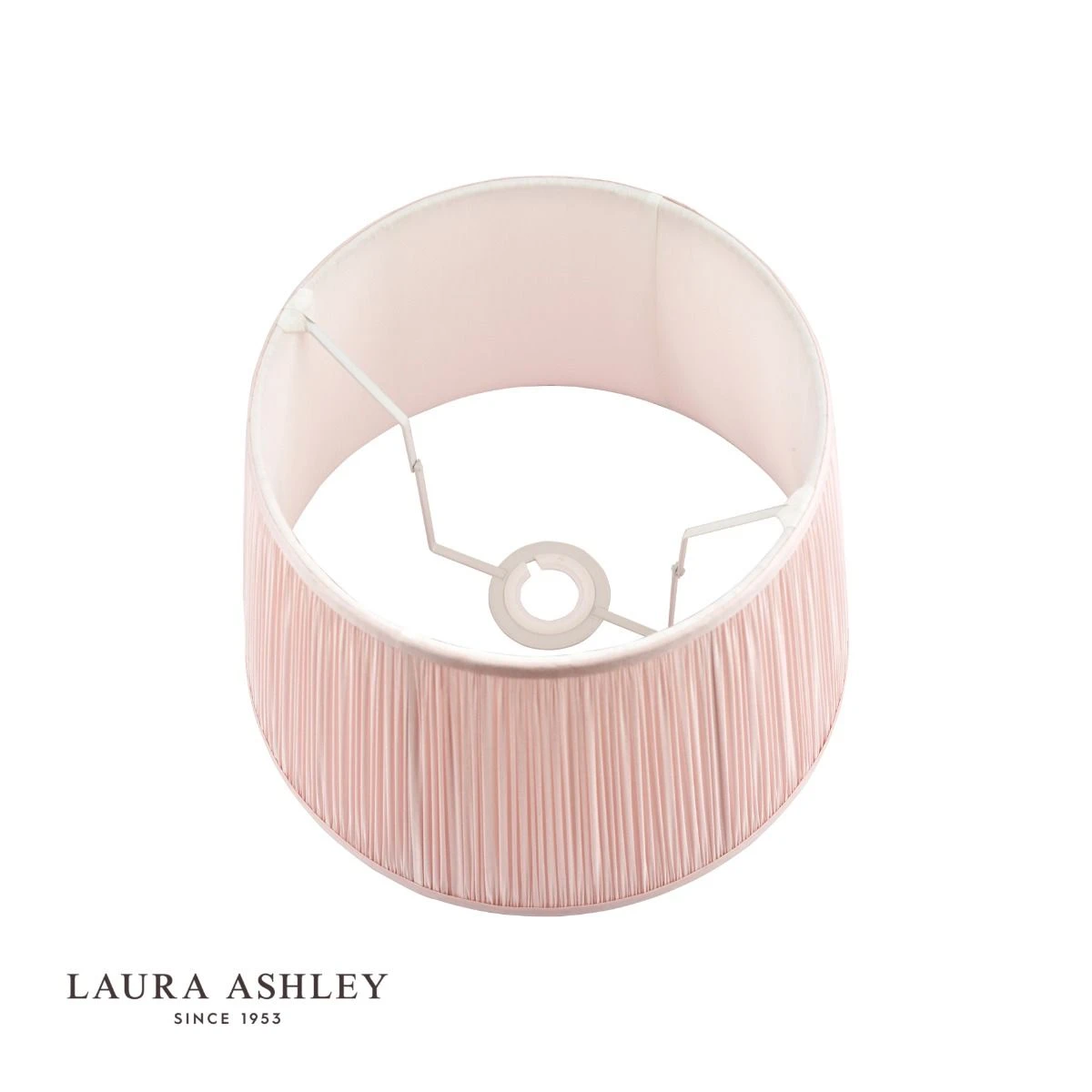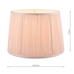 The Laura Ashley Hemsley lightshade has a classic, slightly angled, Empire drum form. The diameter of this size is 30cm. Here we finish it in an elegant, pleated smooth silk in pink.