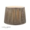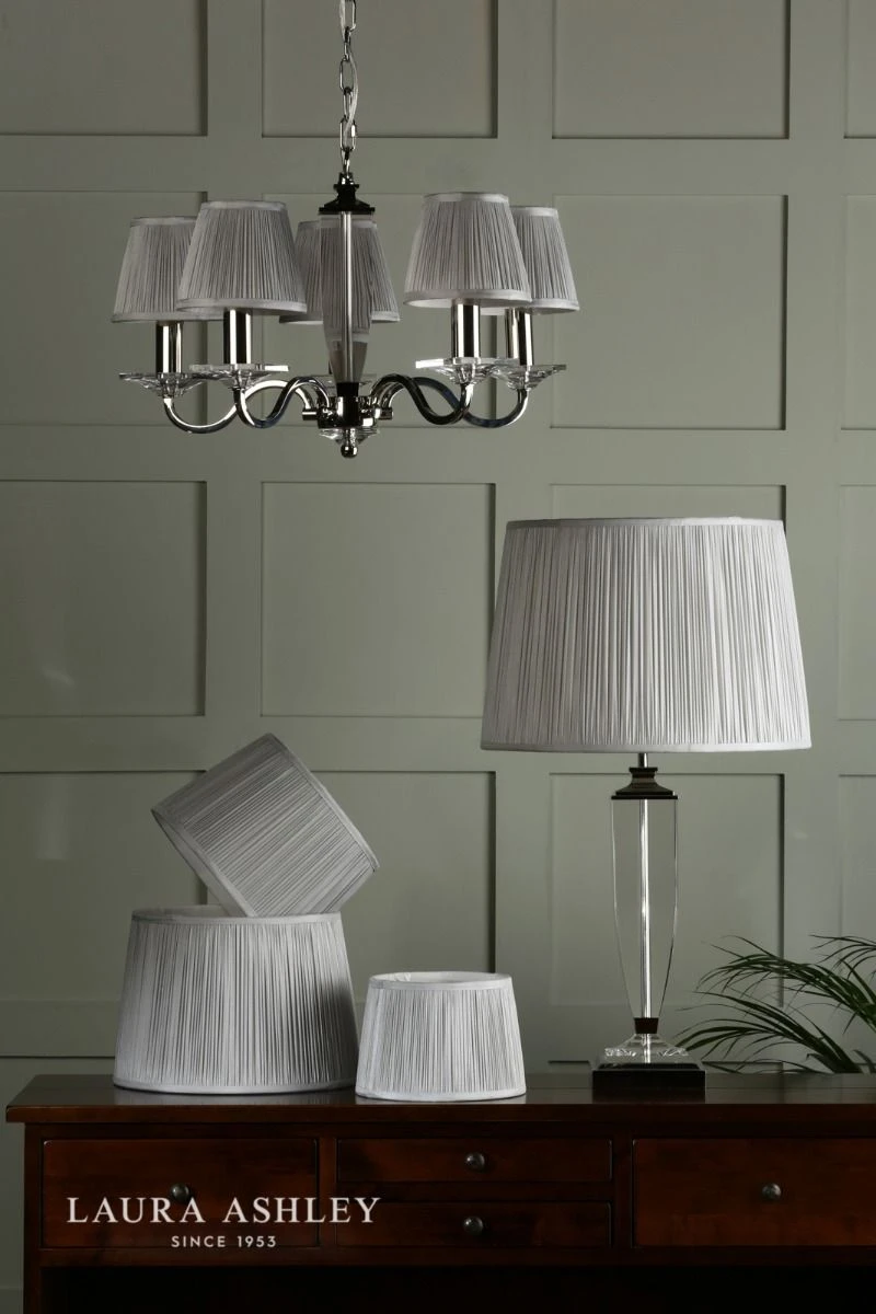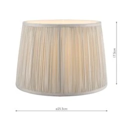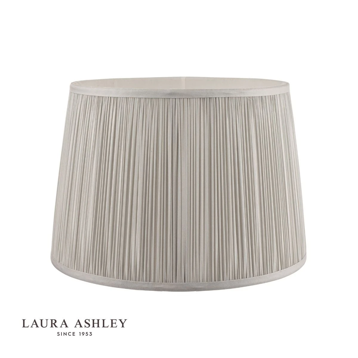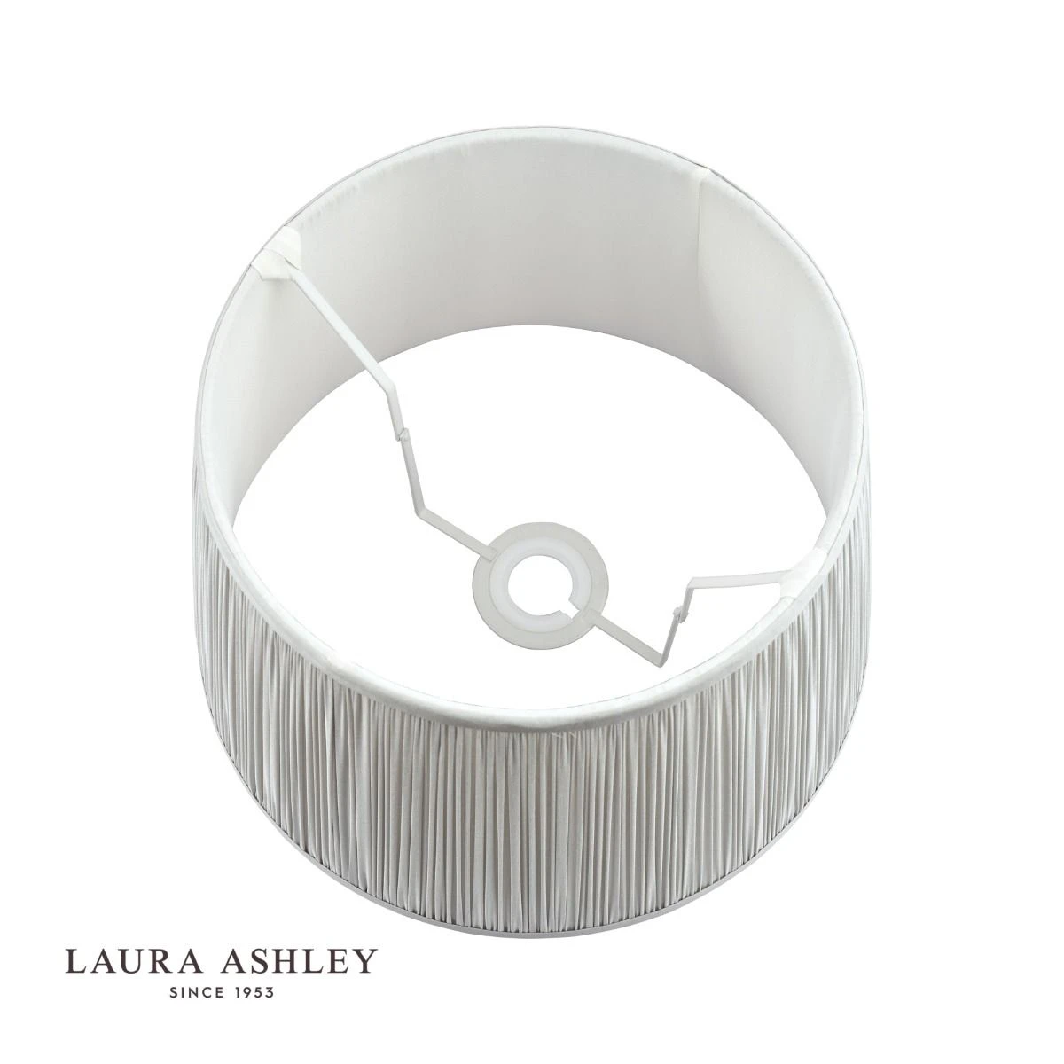 The Laura Ashley Hemsley lightshade has a classic, slightly angled, Empire drum form. The diameter of this size is 25cm. Here we finish it in an elegant, pleated smooth silk in silver.