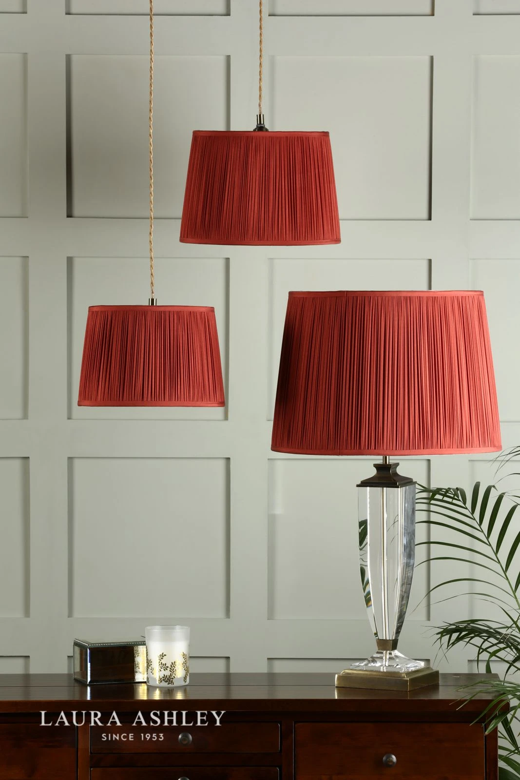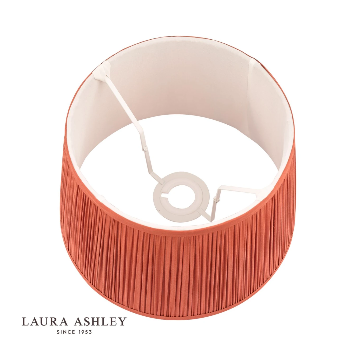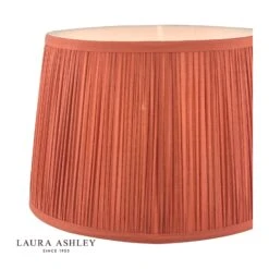 The Laura Ashley Hemsley shade has a classic Empire tapered drum form in an elegant, pleated smooth silk. Shade only; fitting not included. Suitable for E27 fittings; comes with a reducer ring to fit traditional B22 fittings