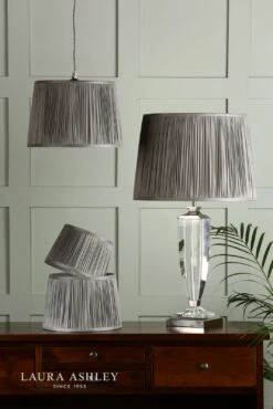 The Laura Ashley Hemsley lightshade has a classic Empire tapered drum form in an elegant, pleated smooth silk. Now also available in warm colours for cooler months – why not ring the changes with a quick switch of shades each season?