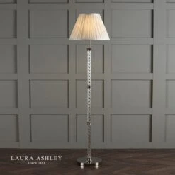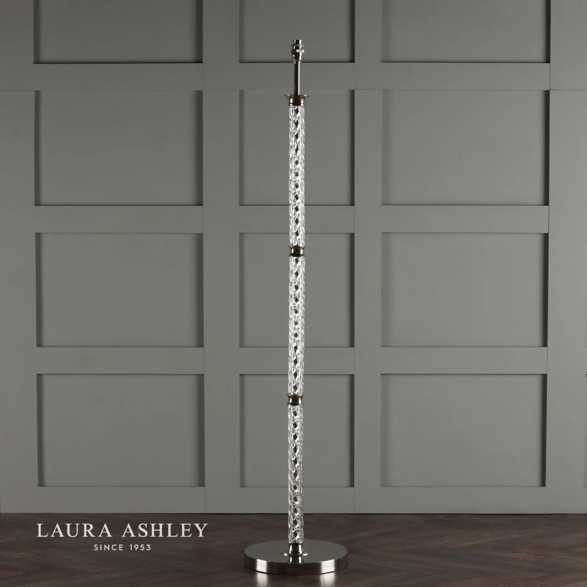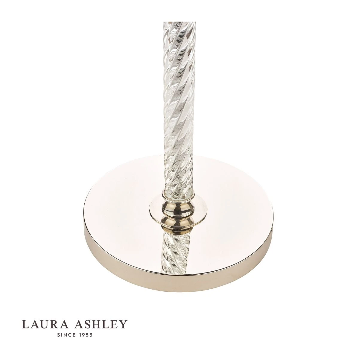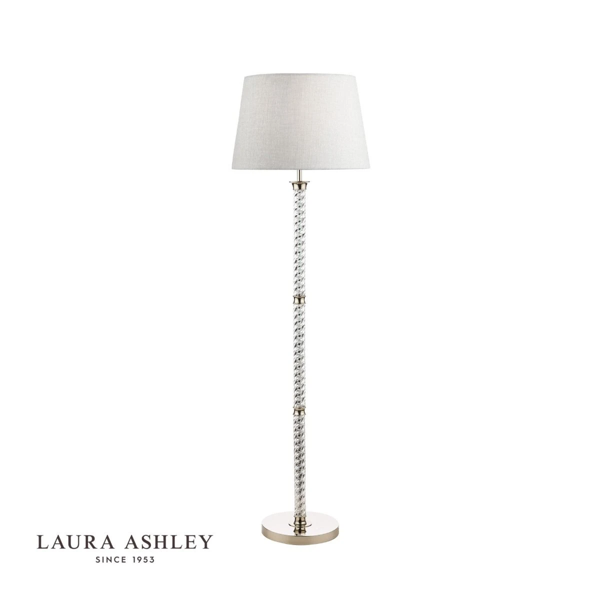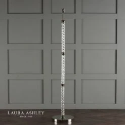 With a twisted glass and vintage polished nickel design, the Laura Ashley Louis column floor lamp is a stylish, statement piece. Detailed and classical, with a candlestick form, this elegant floor light will enhance the beauty of your favourite rooms.