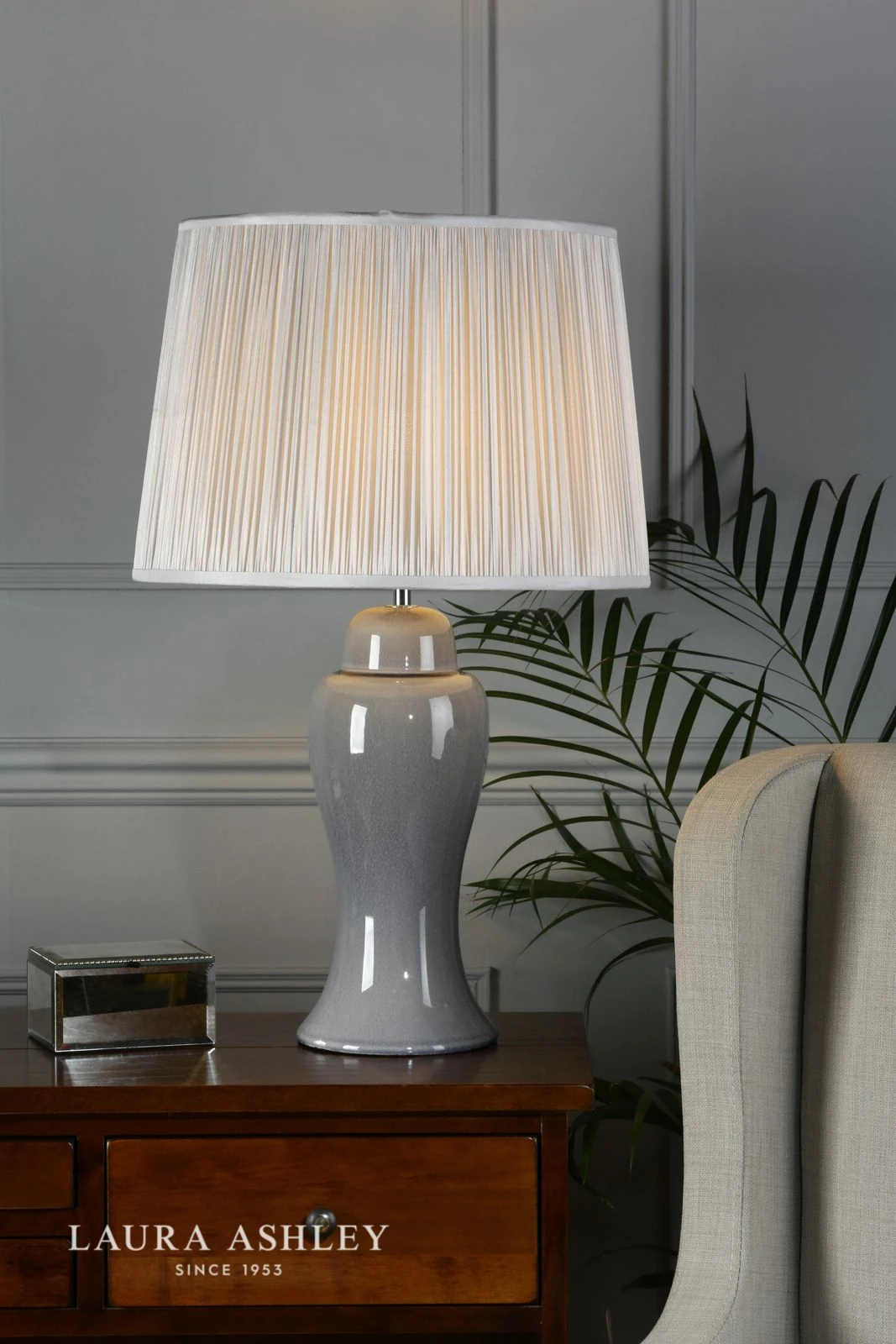 The elegant Regina table lamp base from Laura Ashley is a lamp for upstairs as well as down. With a classic vase shape, it has a colour wash finished with a subtle crackle effect glaze for a vintage effect in a range of easy-to-live-with contemporary colours. Easy to live with, the Regina lamp base will sit nicely on a side table in the living room or on a hall console or bedside table.