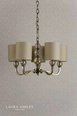 Laura Ashley Selby 5lt Chandelier Antique Brass Amber Glass With Shades