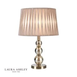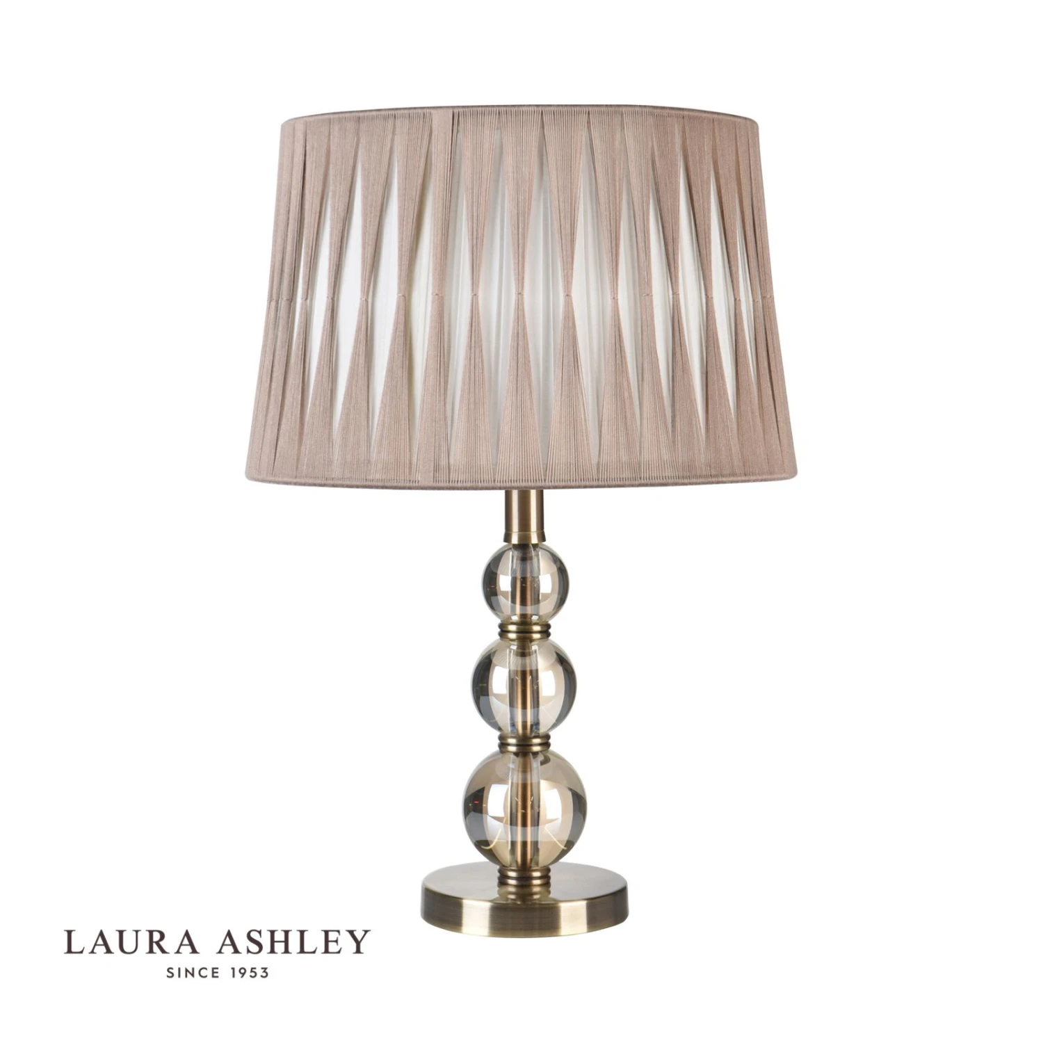 The Laura Ashley Selby Grande table lamp base has an elegant spindle form threaded with faceted amber glass balls of decreasing size, poised on a round foot. Finished in warm antique brass, the Selby Grande table light will enhance any interior, whether traditional or contemporary in style. Sold as a base only table lamp; we recommend a 30cm shade – for a timeless look, why not try the Laura Ashley Fenn Silk shade or, for a contemporary look, try the Bacall Linen shade? This table lamp base has a coordinating gold cable with a convenient push-bar switch.