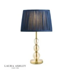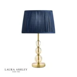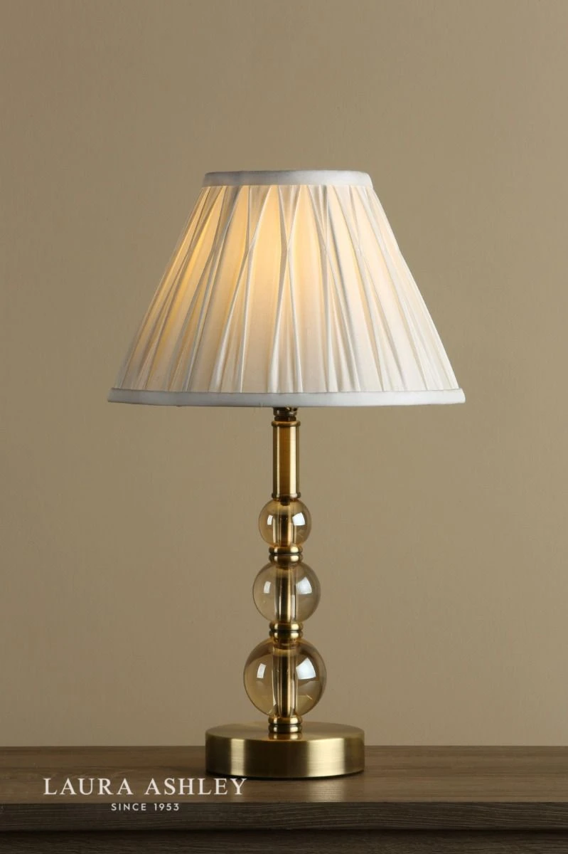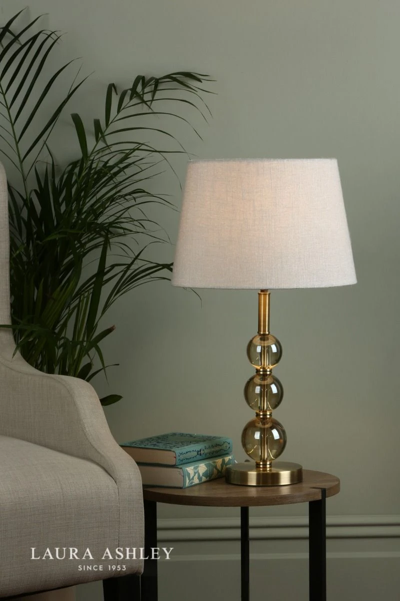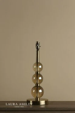 The Laura Ashley Selby table lamp base has an elegant spindle form threaded with pretty faceted amber glass balls of decreasing size, poised on a round foot. Finished in warm antique brass, the Selby table light will enhance any interior, whether traditional or contemporary in style.