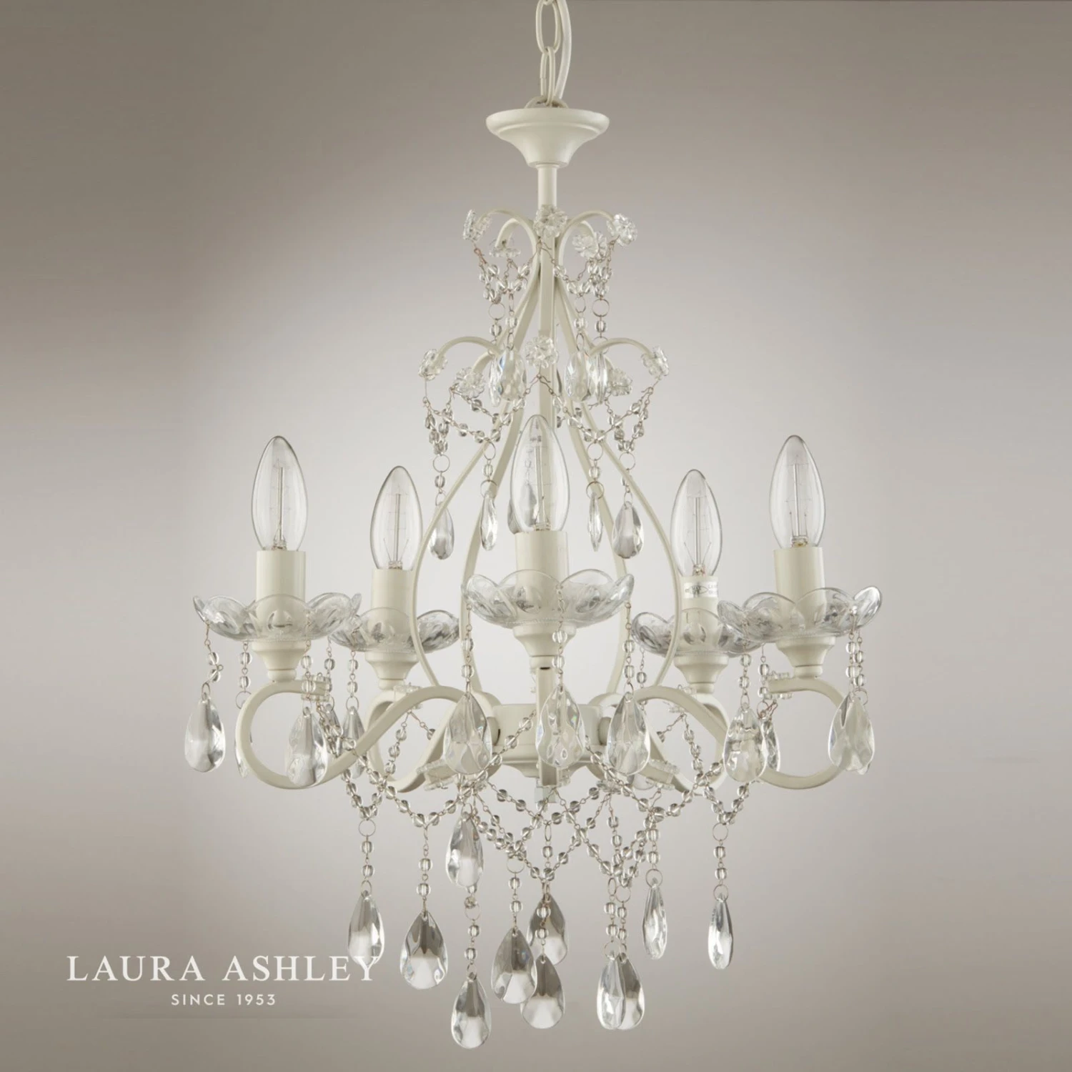 If you want to create all the glamour of a Versailles chandelier in a far more bijou space, why not opt for the Shamley ceiling light from Laura Ashley? Positively dripping with light-refracting crystal teardrops and beads, this metal pendant light has 5 lights held on curved arms. The metalwork is painted in a matt white finish, so this petite chandelier will be right at home with both contemporary and more traditionally décor.