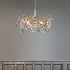 What’s not to like about this gorgeous willow branch chandelier dripping with long crystal raindrops? Painted in champagne with a satin finish, the Willow pendant ceiling light from Laura Ashley is bright and pretty.