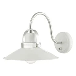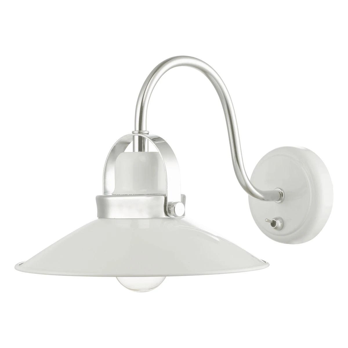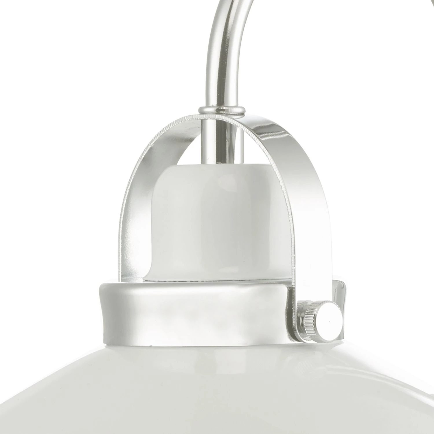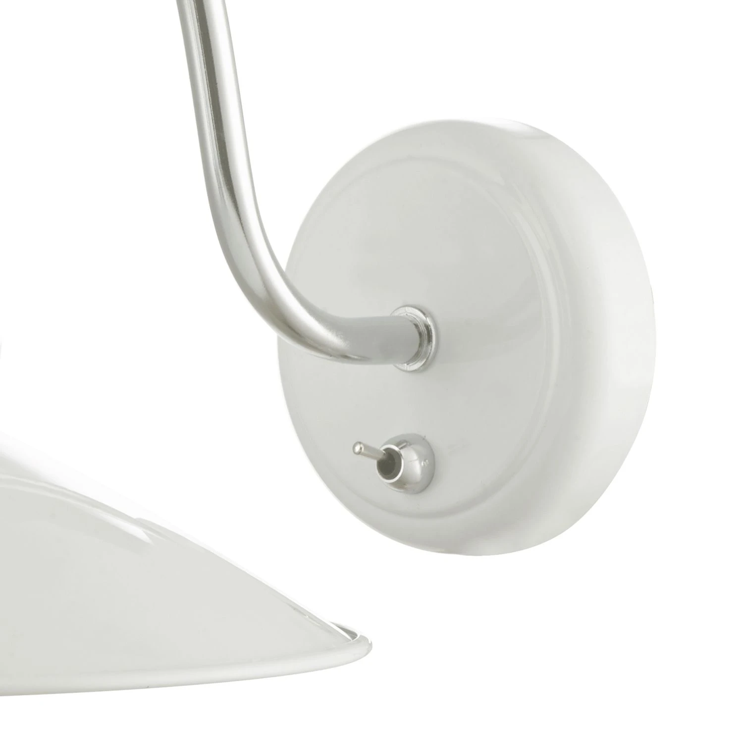 A clean wall light with a polished chrome rocker switch. The white gloss shades and chrome detailing offer a clean stripped down softer industrial look. Available as a single wall light, single pendant, and three-light bar pendant.