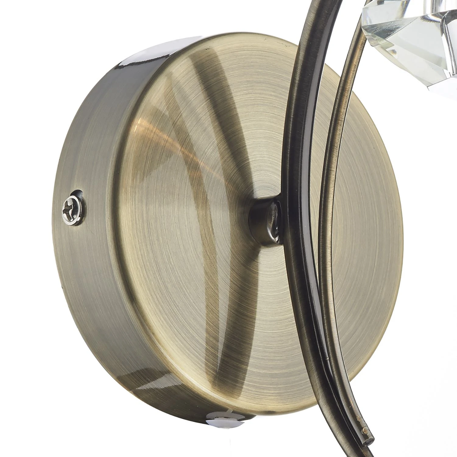 The LUTHER Wall Light in antique brass with a faceted crystal glass shade.