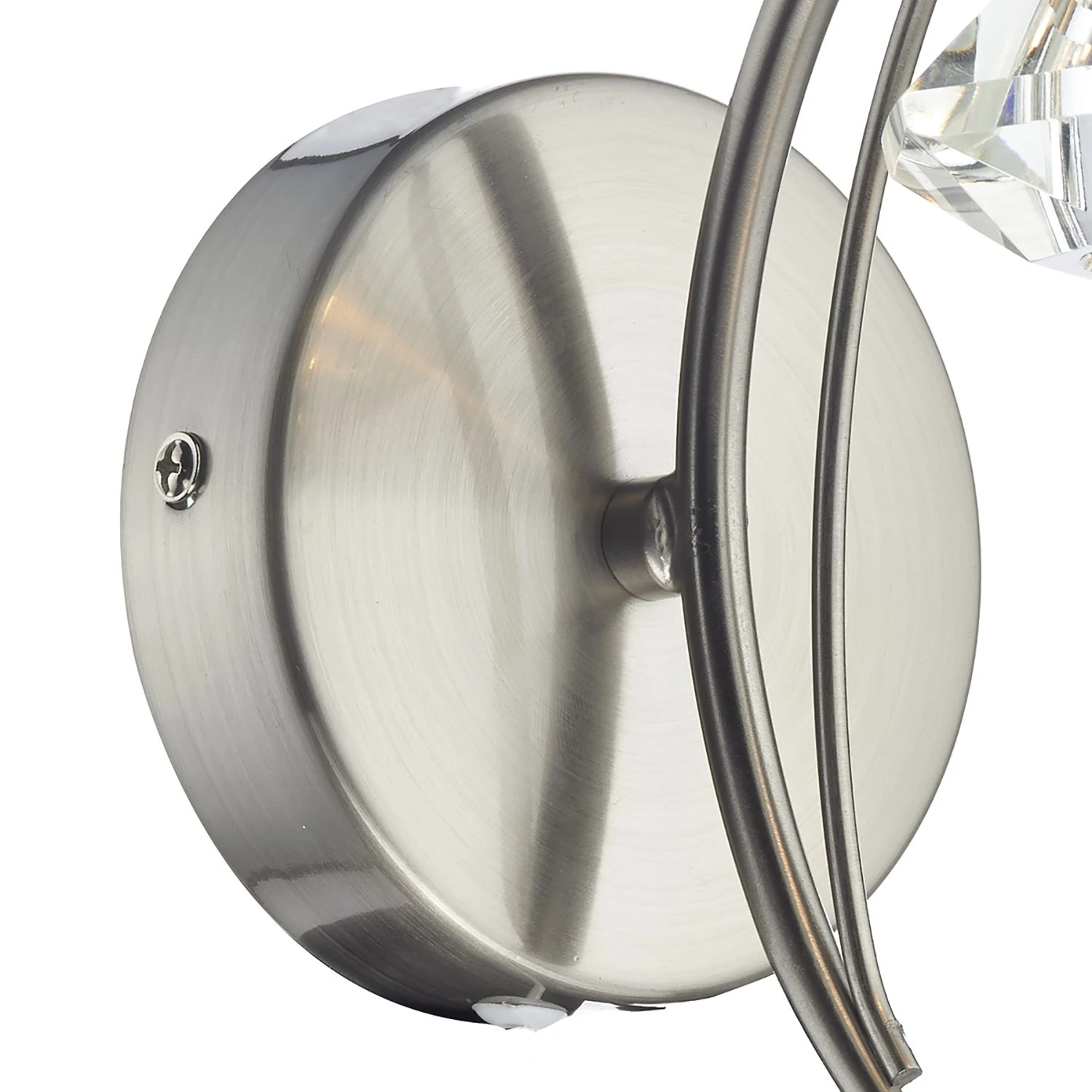 The LUTHER Wall Light in satin chrome with a faceted crystal glass shade.