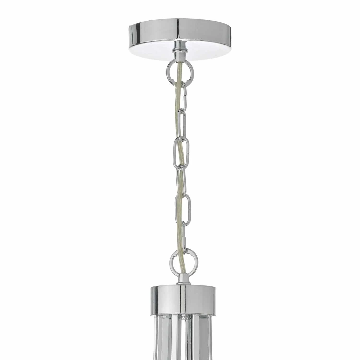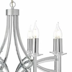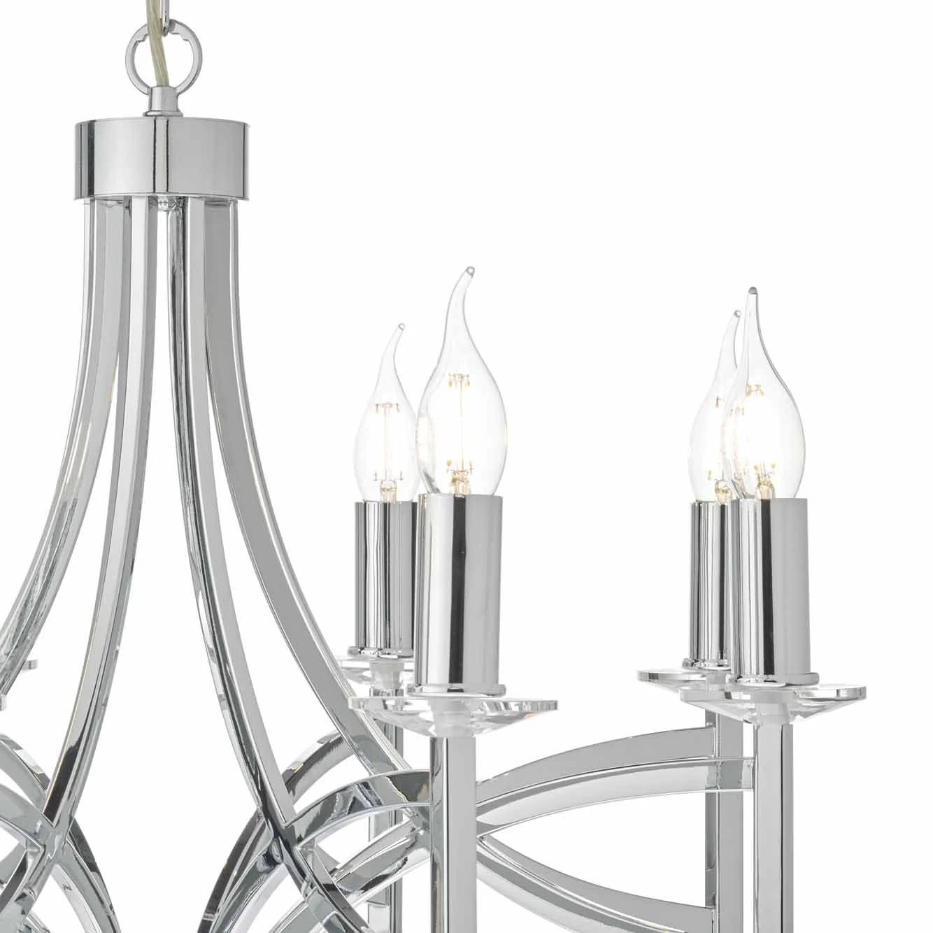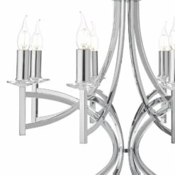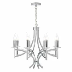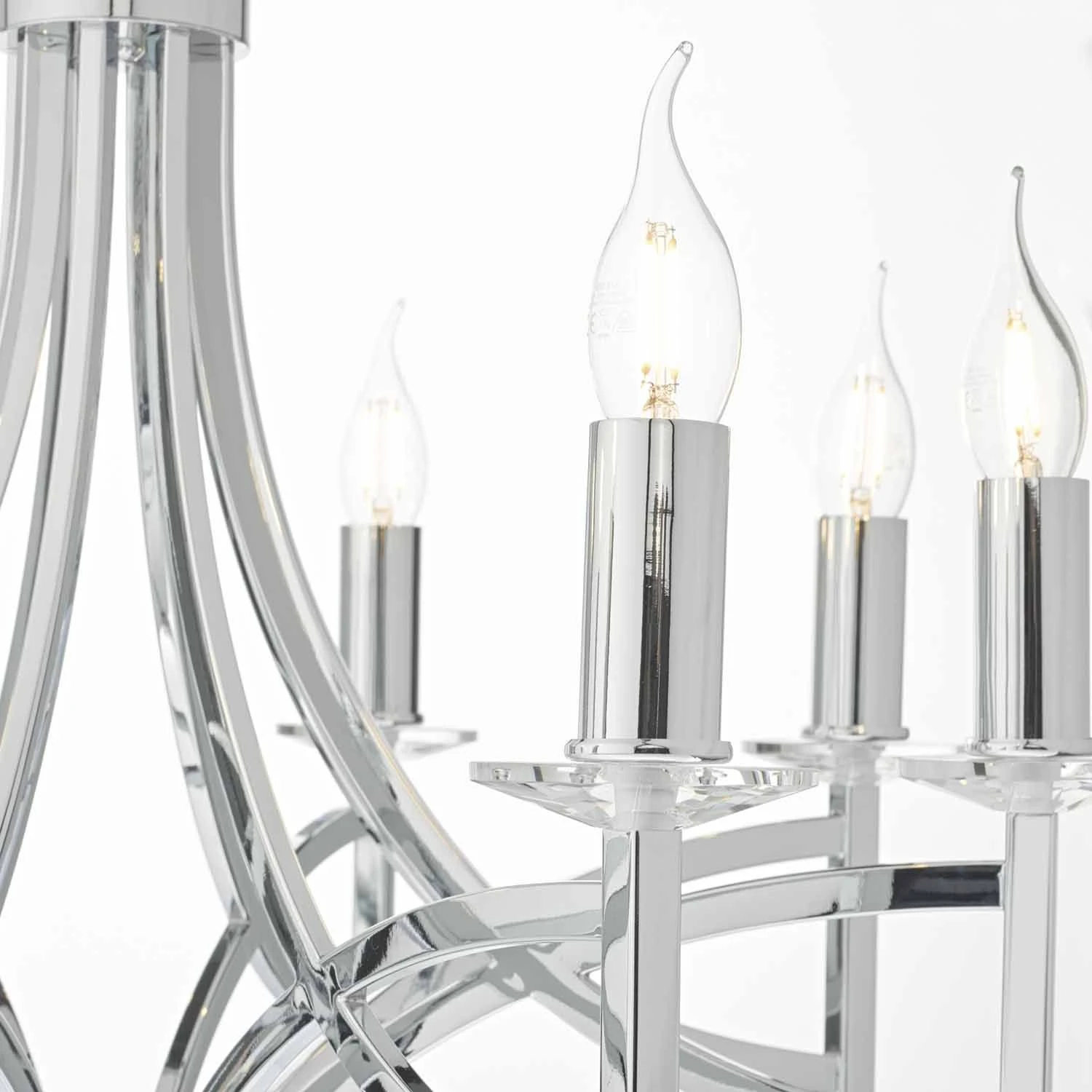 LYON eight-light pendant had eight faceted crystal bobeches sitting atop sweeping and intersecting arms to create this modern take on a classical chandelier. A bobeche is a collar originally intended to catch the drips of wax on a candlestick; here they add a touch of authenticity to our contemporary design. The light is also supplied with two sets of candle drips for use with or without shades (shades sold separately) and 1m of chain which is height adjustable on installation.
