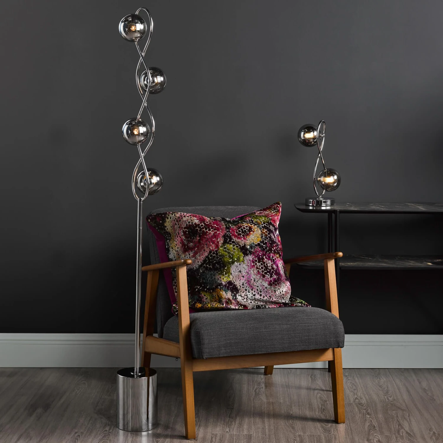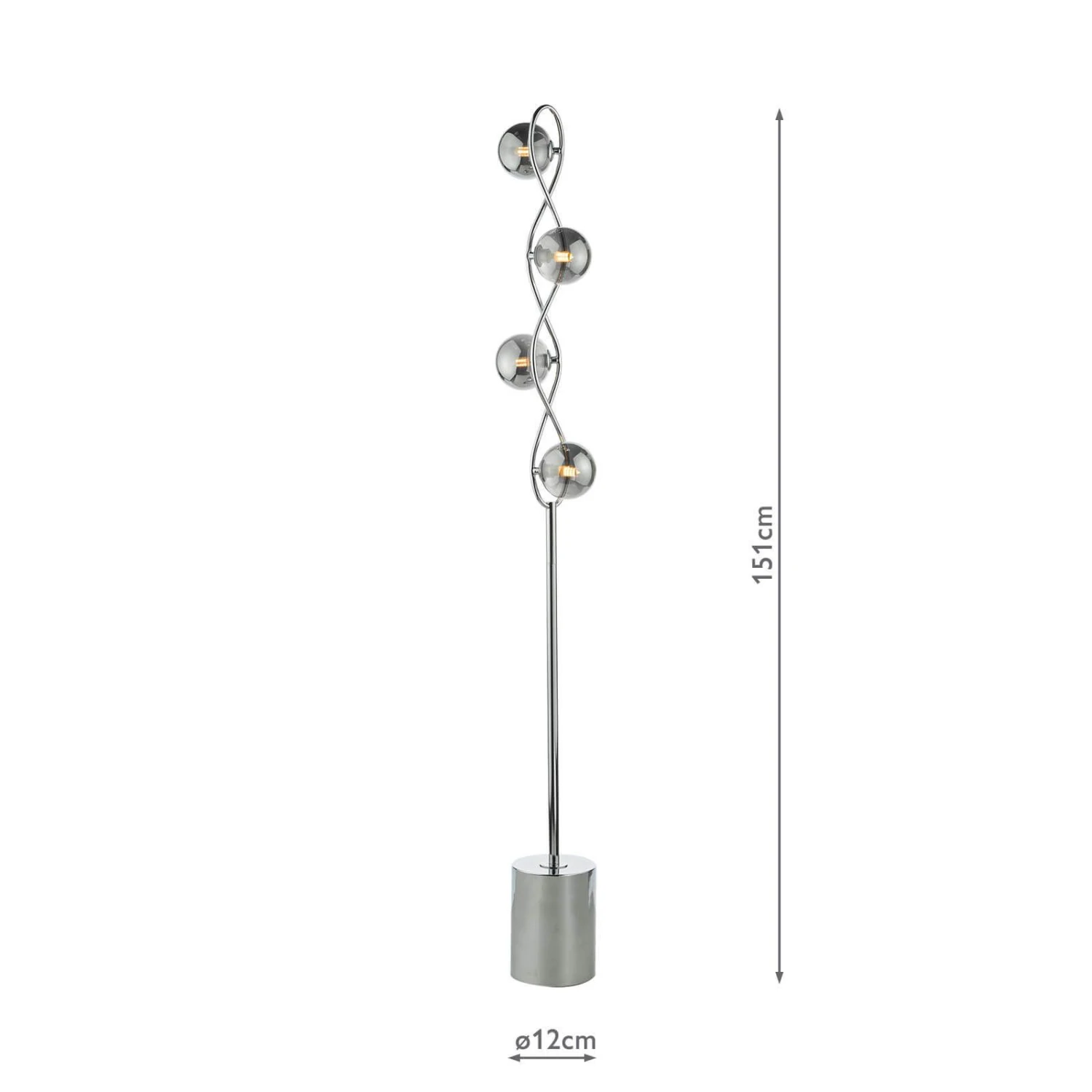 The Lysandra 4 Light Floor Lamp is a beautiful floor lamp with a fluid shape and smoked glass shades. The Lysandra lamp features a polished chrome frame with a clear in-line rocker switch. The Lysandra lamp is designed to complement any living space in your home, from the living room to the bedroom. The Lysandra lamp takes a four G9 bulbs (not supplied), We recommend using LED light bulbs from our range of LED bulbs