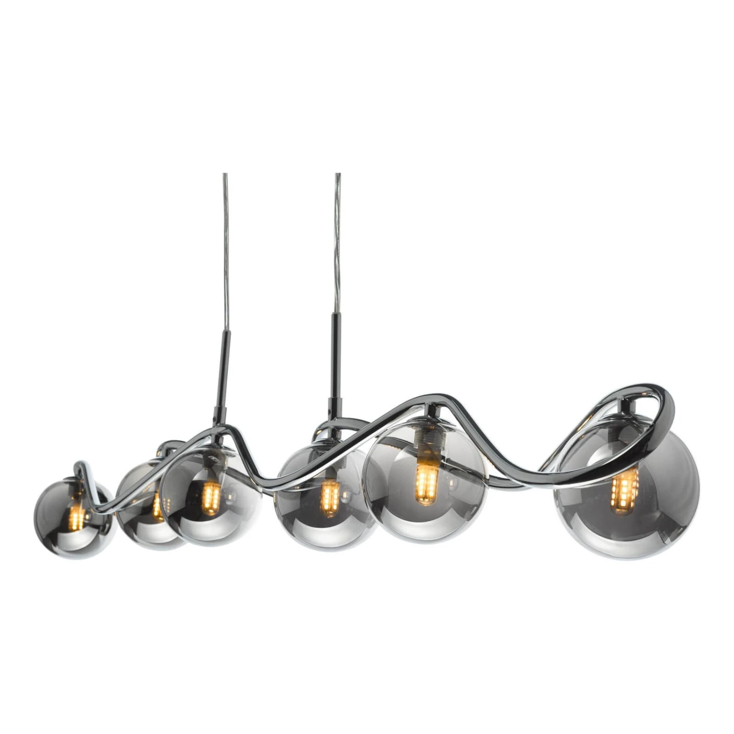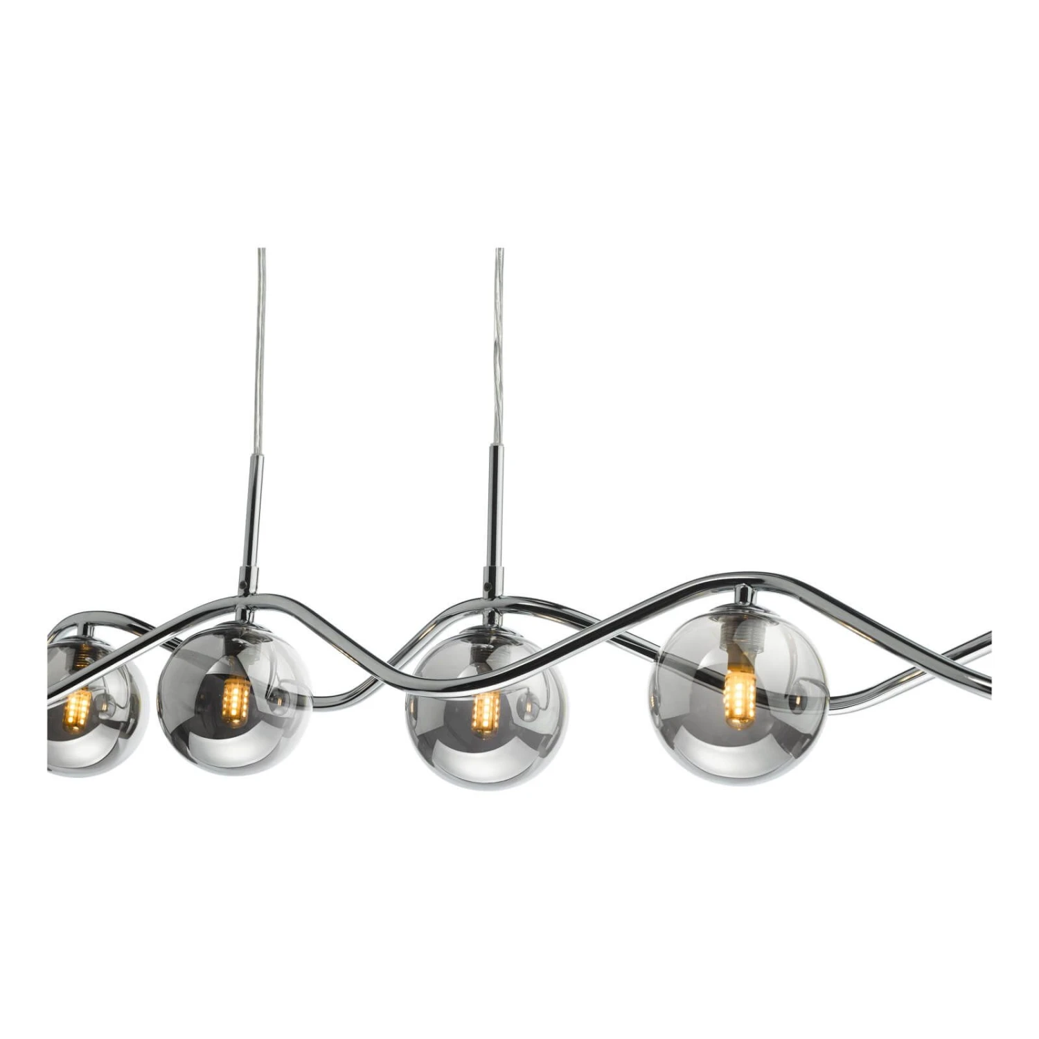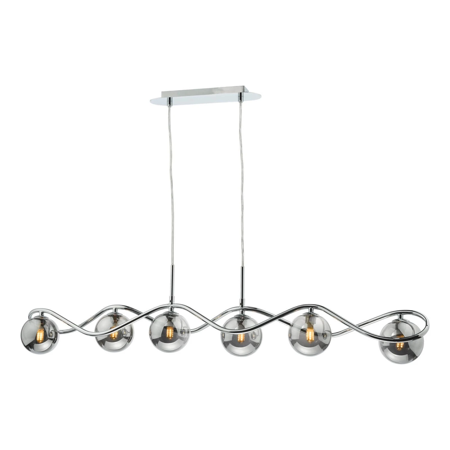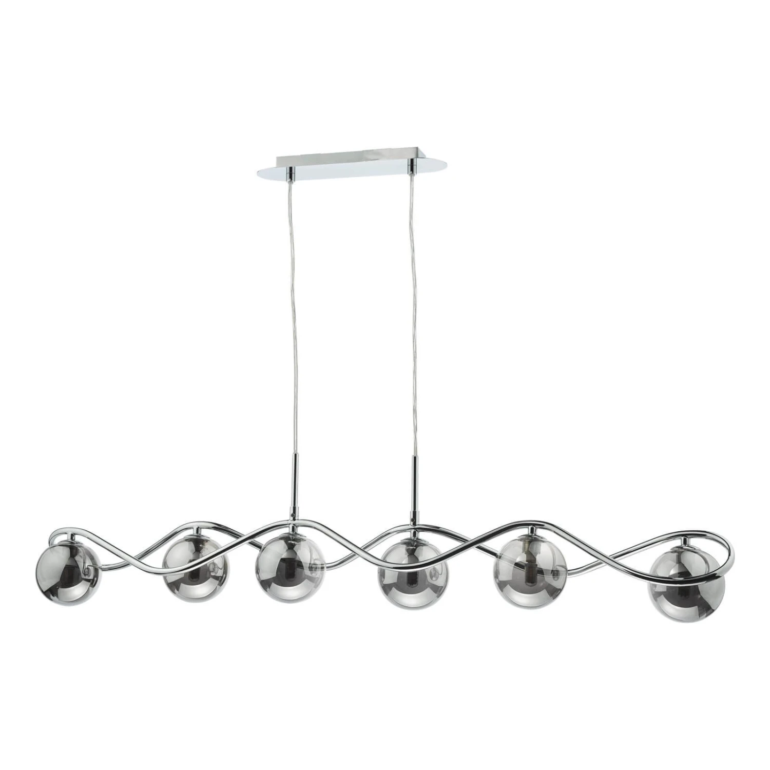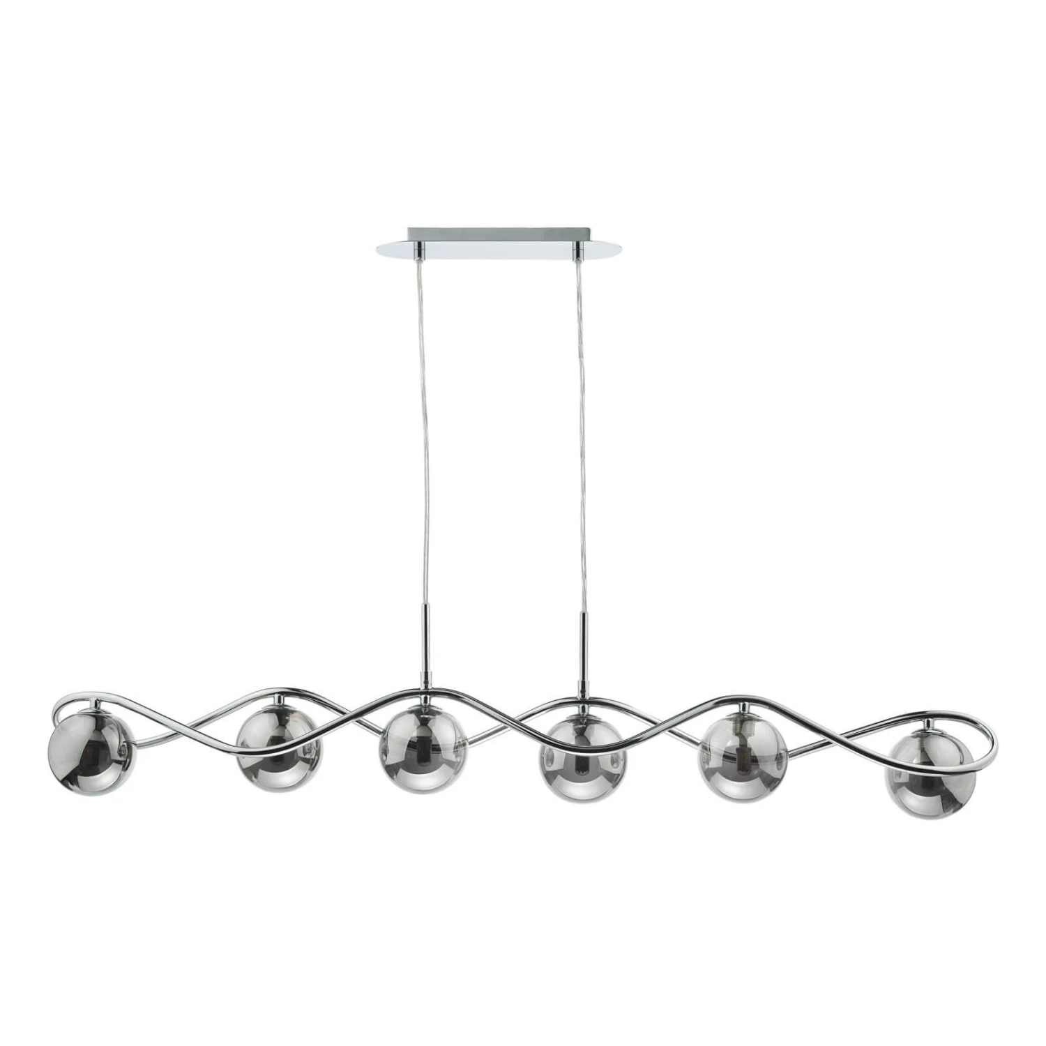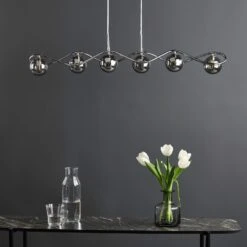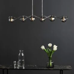 The Lysandra 6 Light Bar Pendant from dar lighting features a polished chrome frame with smoked glass shades. The Lysandra bar pendant features a clear cable allowing you to adjust the height on installation. The Lysandra bar pendant takes 6 G9 bulbs (not supplied), We recommend using LED filament lamps from our range of LED bulbs
