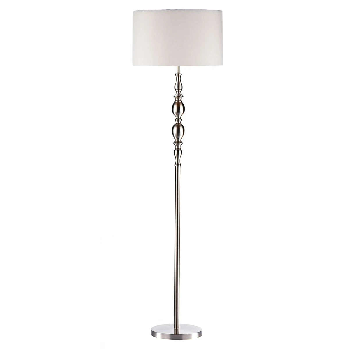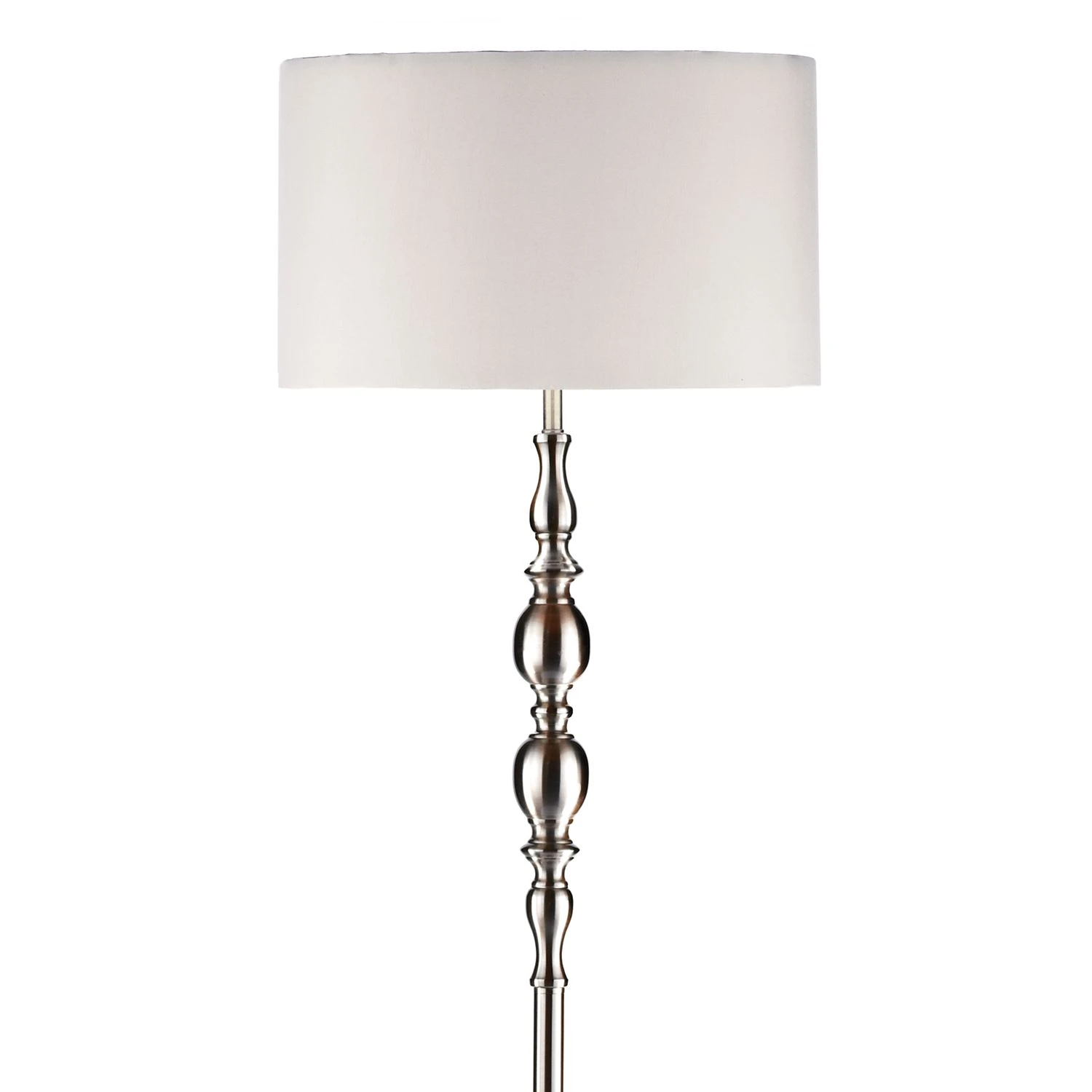 The Madrid Floor Lamp is a luxurious addition to any room. It’s satin chrome base and white faux silk drum shade make for an impressive statement piece. It would be the ideal finishing touch in any bedroom or living room, or works well as a reading lamp by your favourite chair. Bulb not included; takes 1 x 60w max ES GLS.