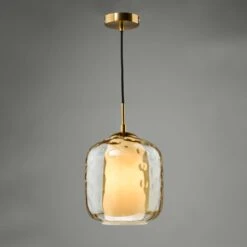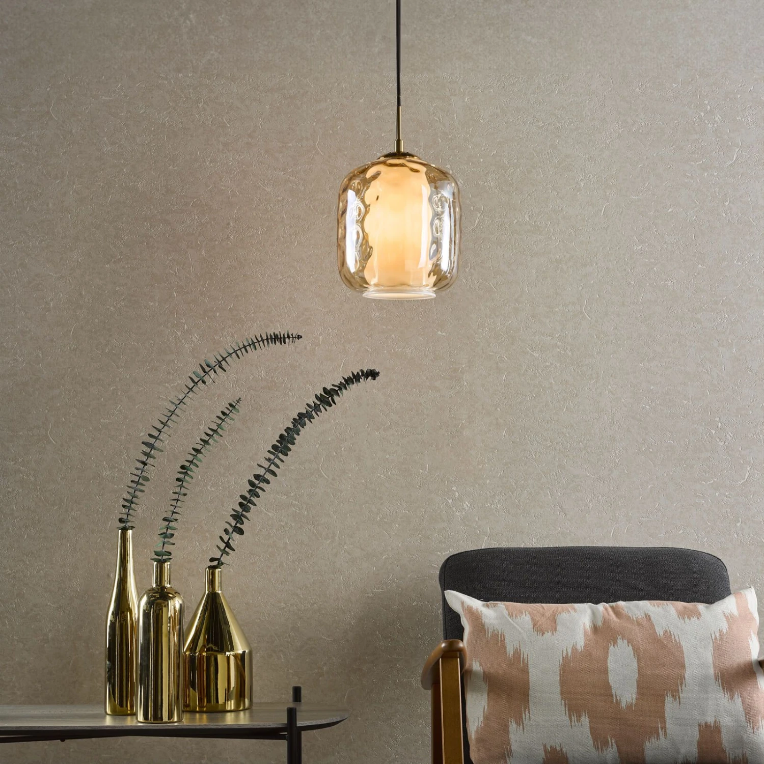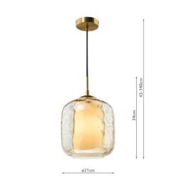 The Majella Pendant Aged Brass and Champagne Glass is a beautiful dimpled glass pendant with a soft opal glass diffuser to reduce glare. The Majella pendant features a black braided cable and is height adjustable on installation, with a minimum height of 43cm, and a maximum height of 140cm. The Majella pendant takes a single E27 (ES) bulb (not supplied), We recommend using LED filament lamps from our range of LED bulbs