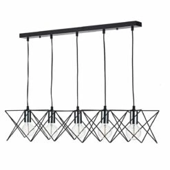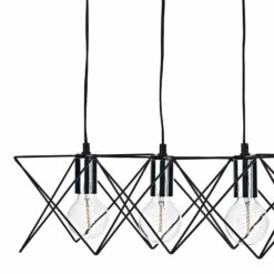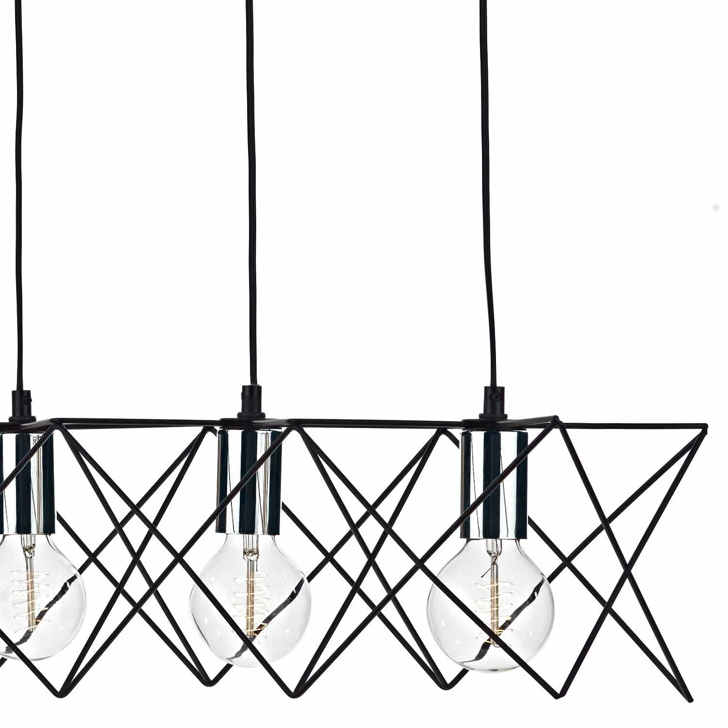 MIDI is a generous (93cm long) over-table bar pendant in a matte black finish with polished chrome lamp holder detail. Perfect for displaying decorative lightbulbs, the open metal work frame adds ambience to vintage and modern interiors alike. Height adjustable on installation to a maximum of 1.3 meters. Pictured with our LED globe lamps (sold separately).