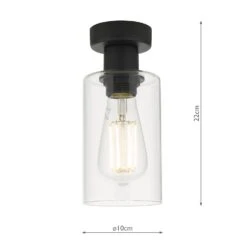 The MIU Flush Ceiling Light is a beautifully simple compact in-door ceiling flush in matt black with a clear glass cylinder surrounding the lamp and is held by a matt black ceiling plate. This sophisticated little flush is capable of giving a great light when used with a high output LED lamp. The unobtrusive style makes it a versatile ceiling light blending in with many interior styles from the minimalist modern all the way to the relaxed industrial look. It is great for low ceilings and where space is minimal. It is equally at home in the hall or landing, as in the kitchen or home office.